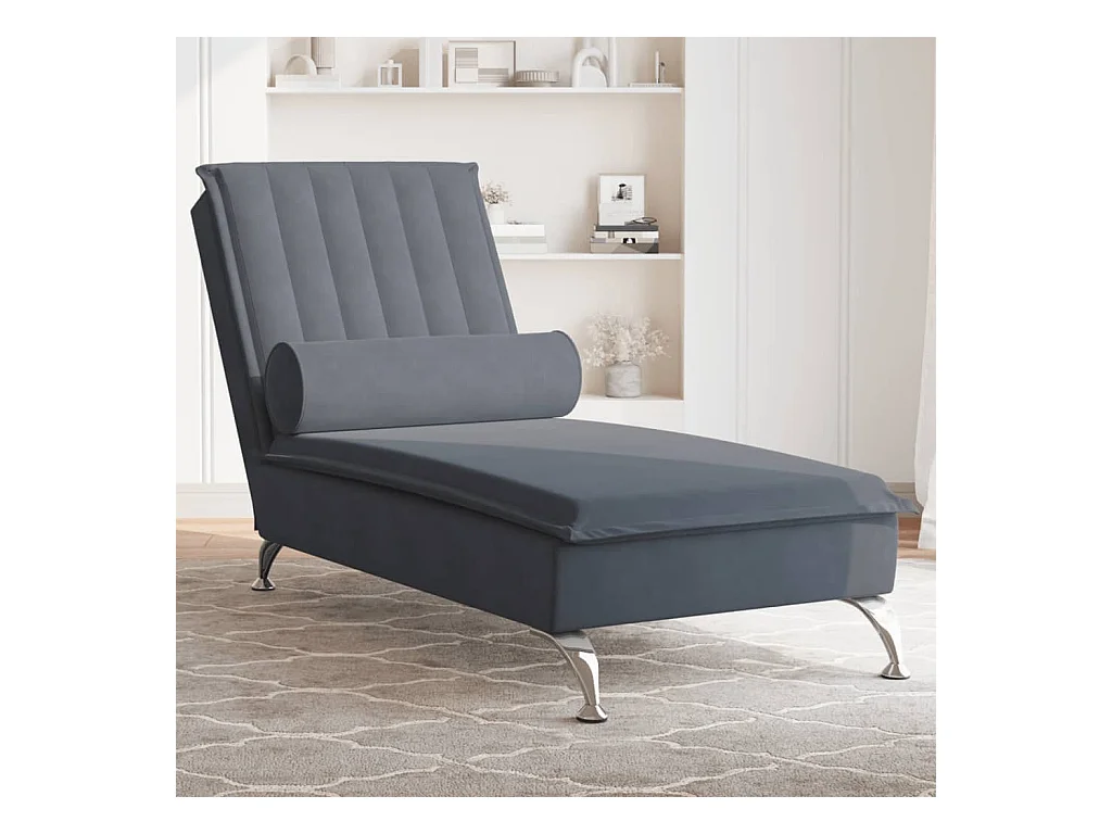 Chaise longue de massage avec traversin gris foncé velours FR19555