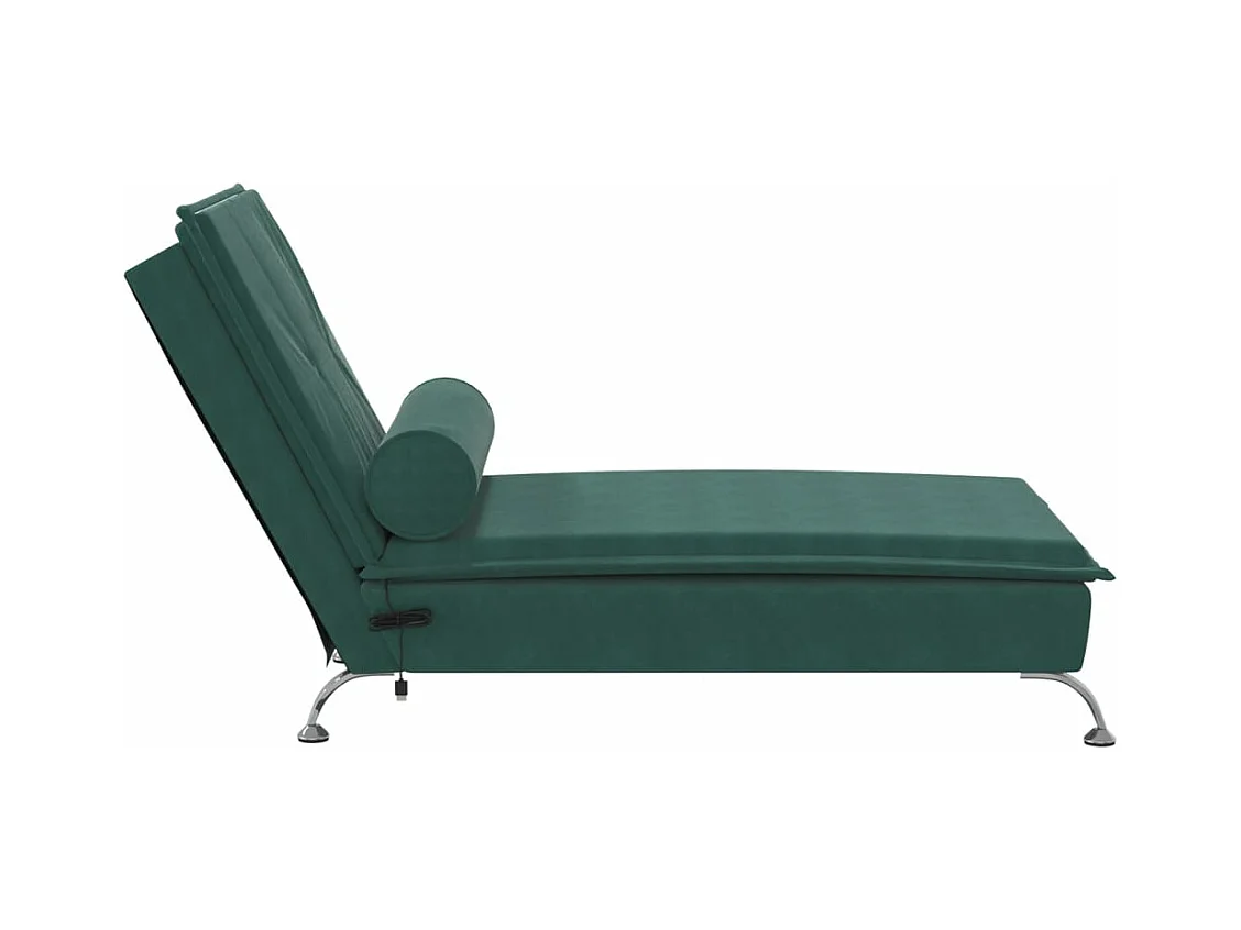 Chaise longue de massage avec traversin vert foncé velours FR56815