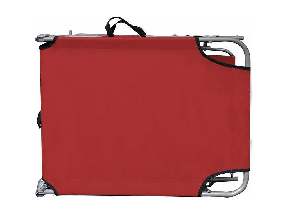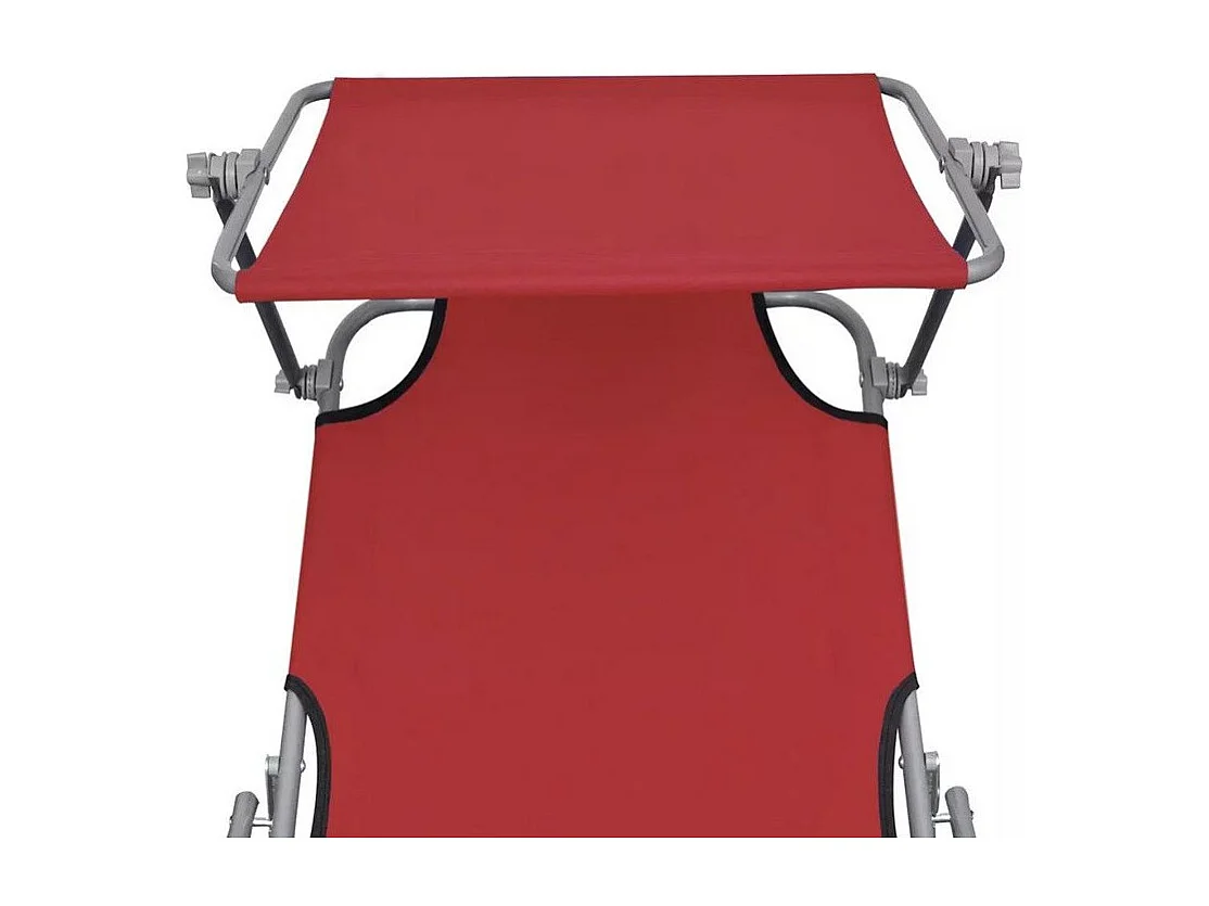 Chaise longue pliable avec auvent tissu rouge et métal Sher