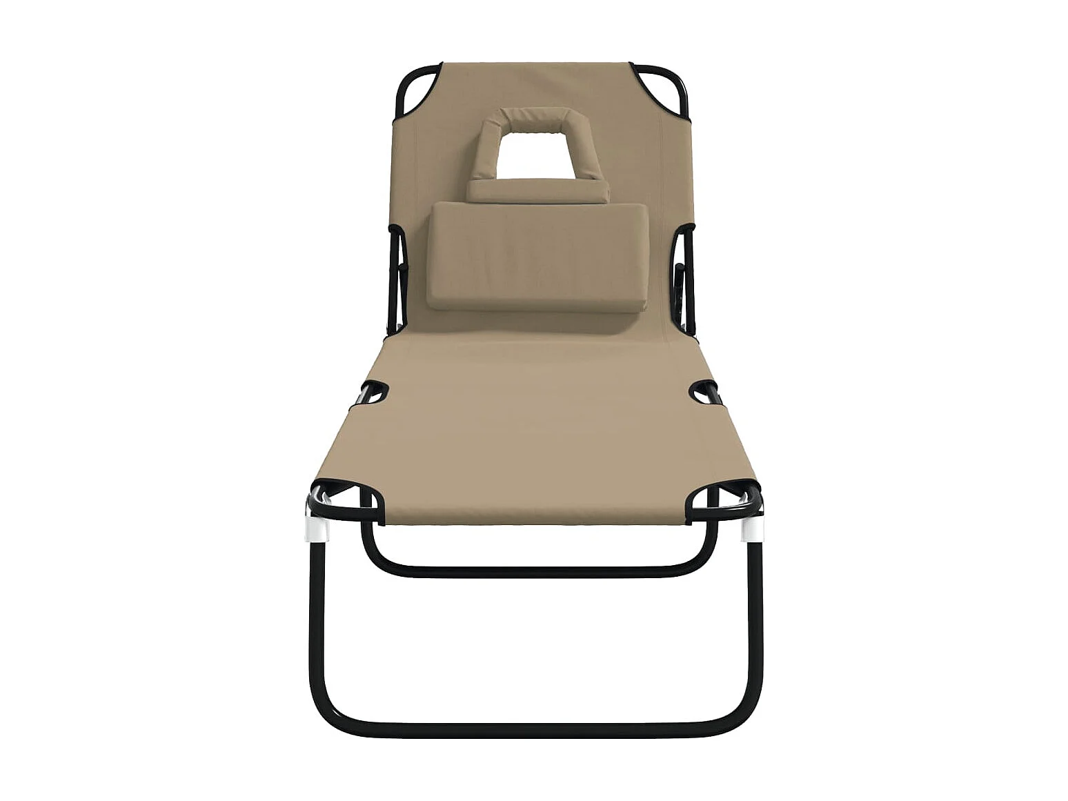 Chaise longue pliante taupe tissu oxford acier enduit de poudre