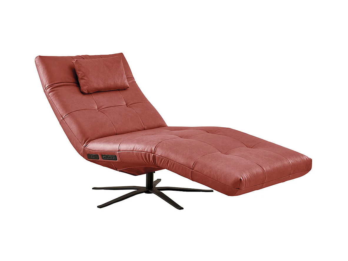 Fauteuil relax pivotant cuir marron et pieds en acier Nary-Couleur Aqua 25 Bordeaux