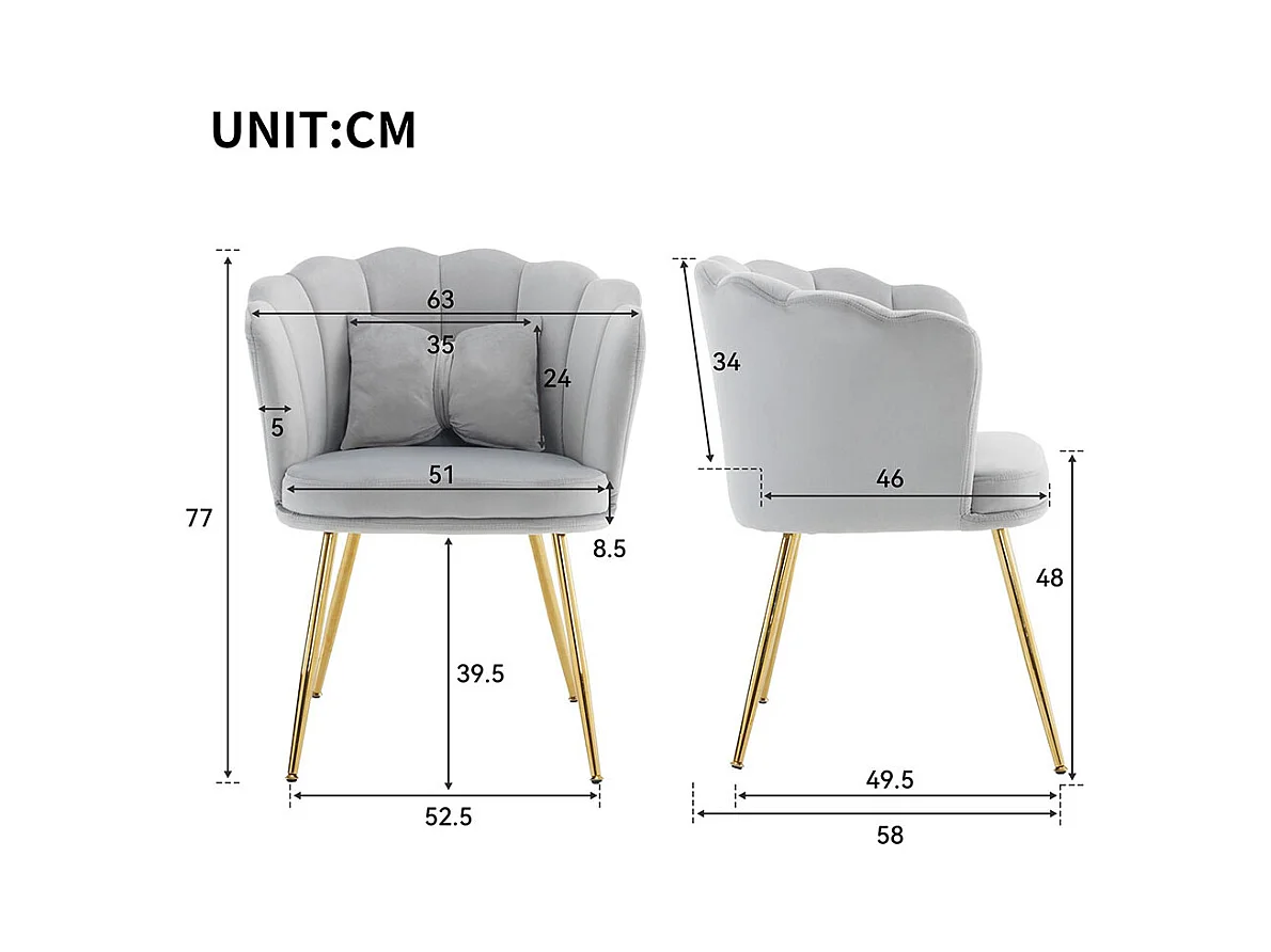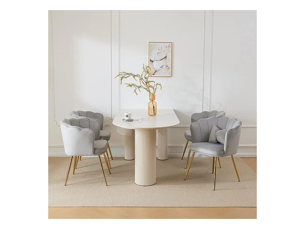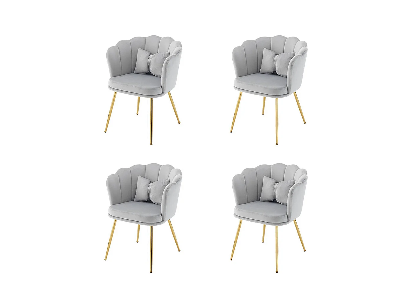 Chaise Lot de 4 rembourrées avec dossier en forme de pétale de pieds en métal doré et de coussins en forme de papillon Gris