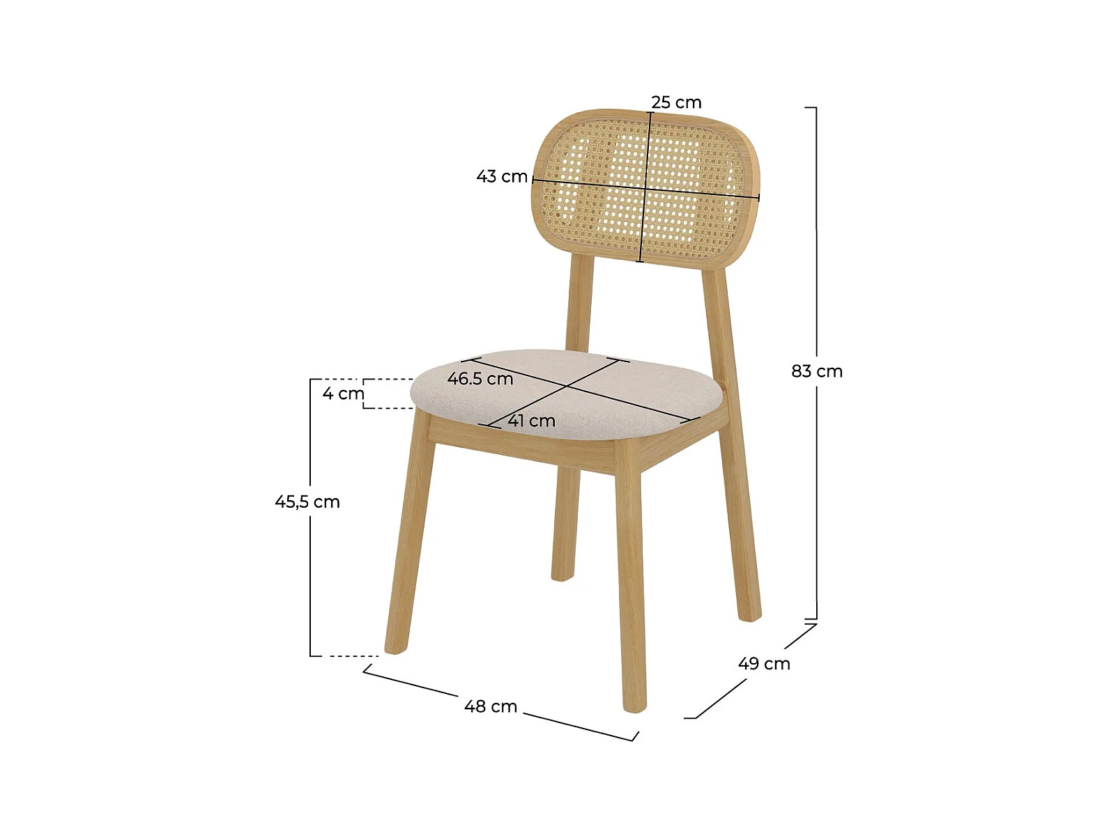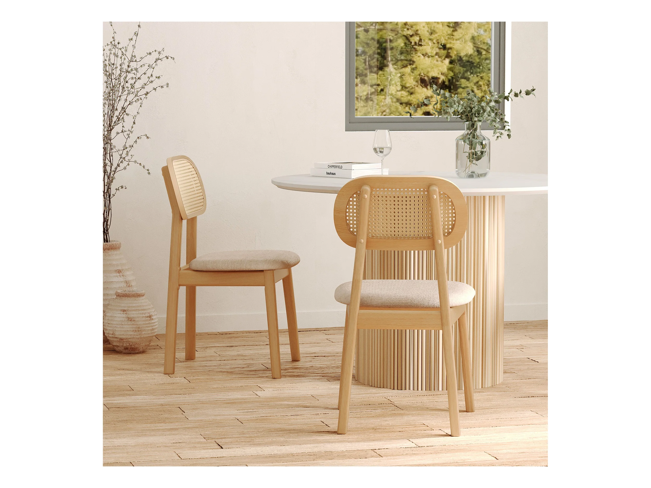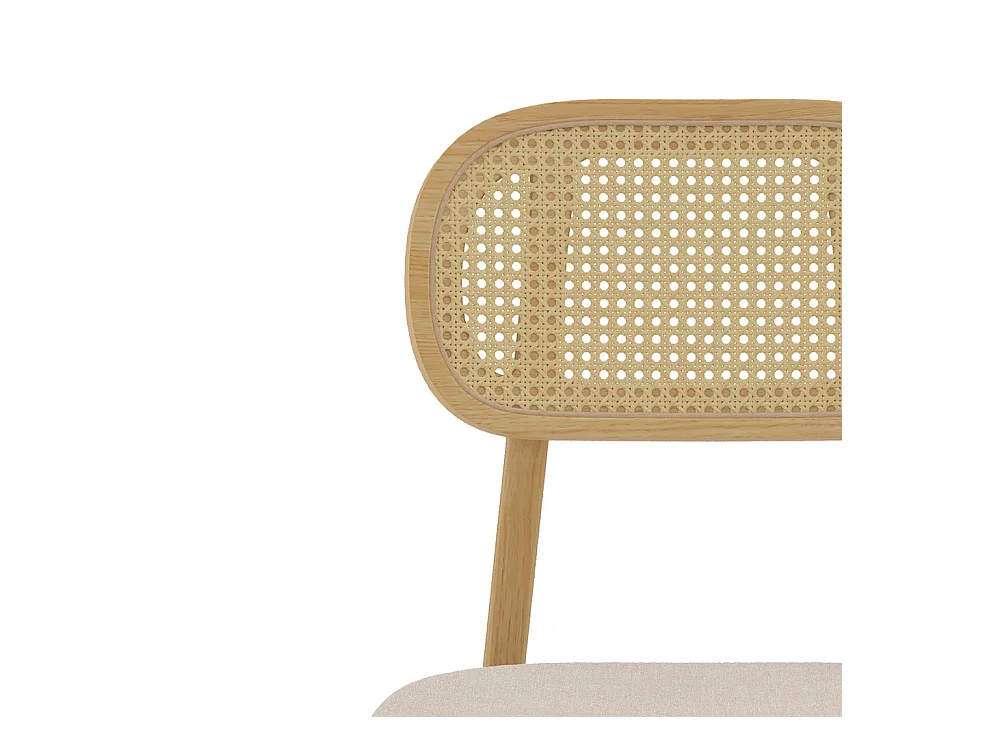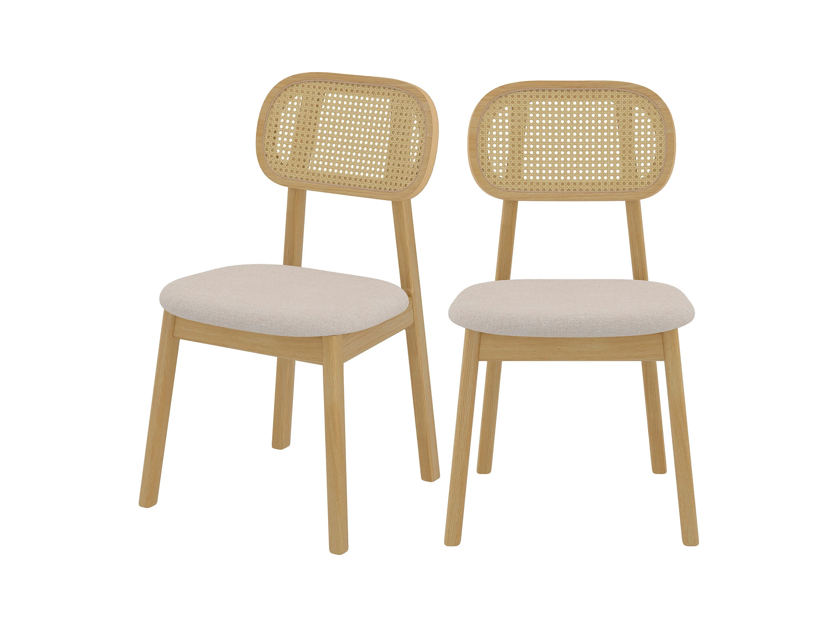 Lot de 2 chaises en bois clair, tissu beige et rotin synthétique - Maria