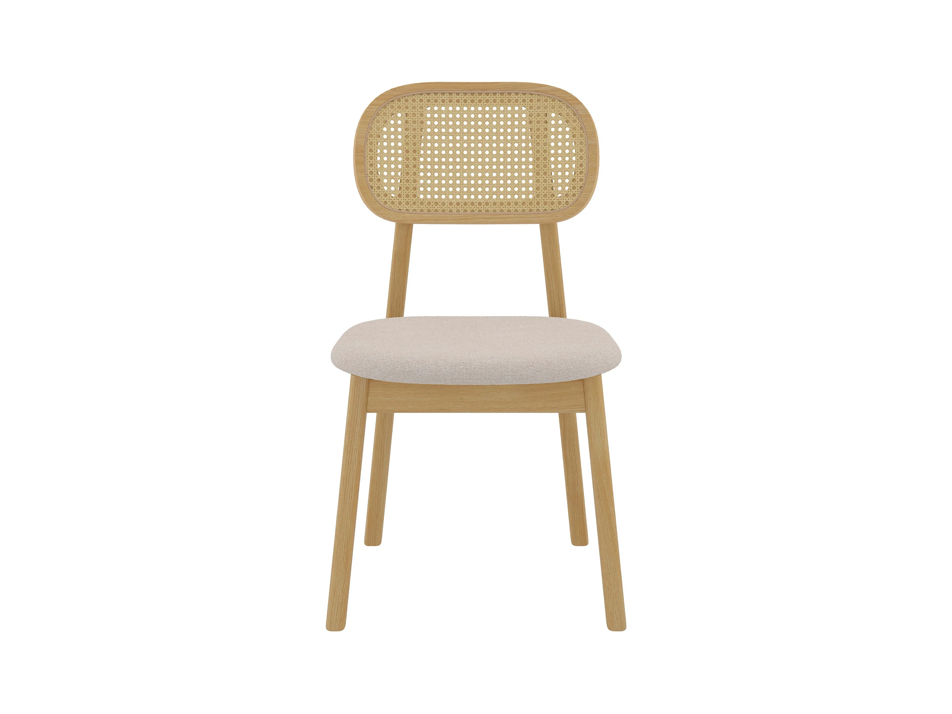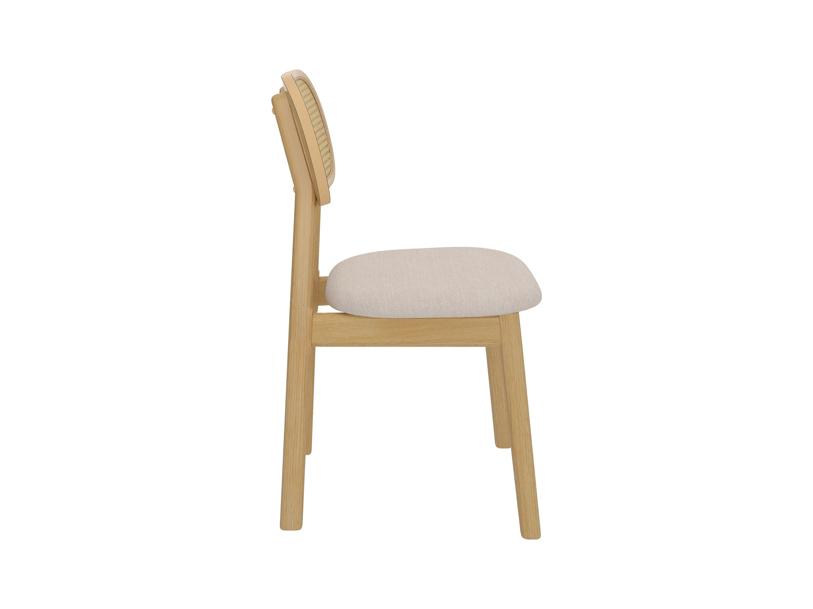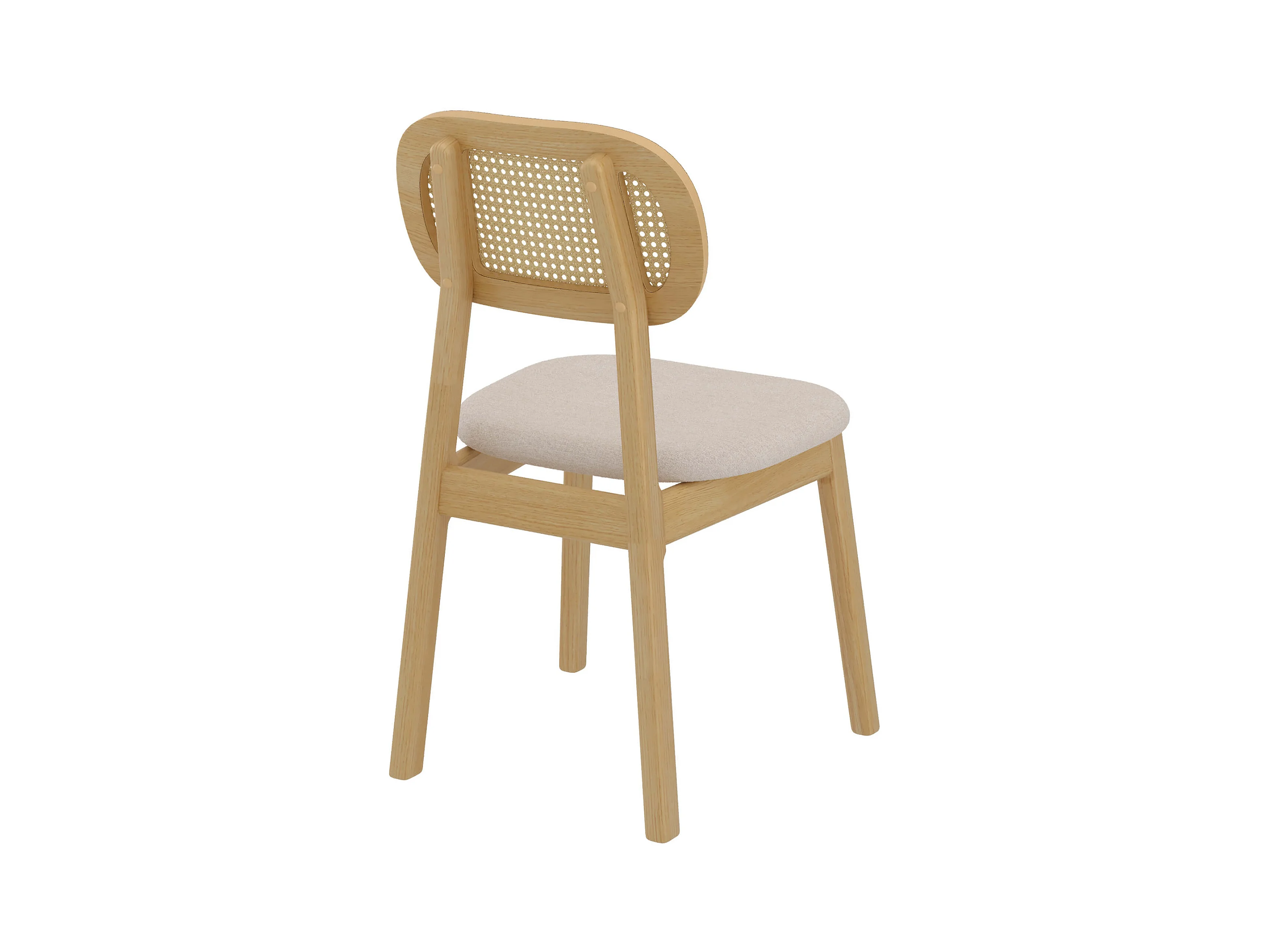 Lot de 2 chaises en bois clair, tissu beige et rotin synthétique - Maria
