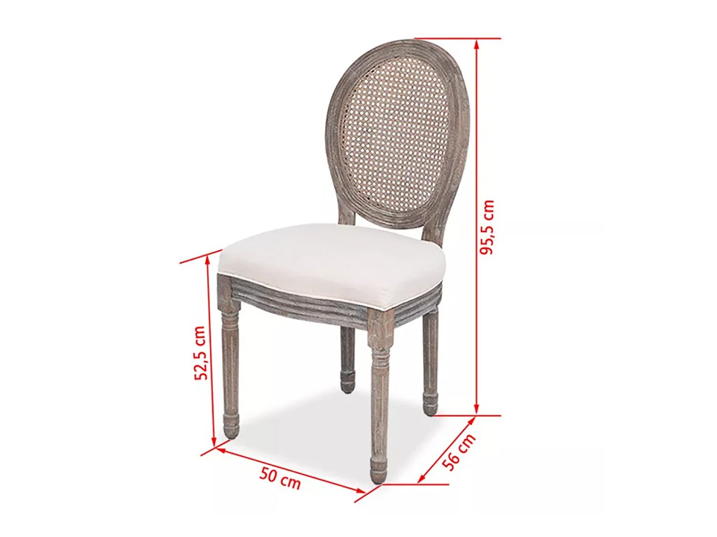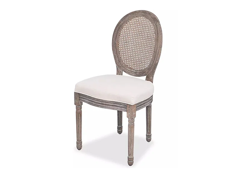 Chaise médaillon lin beige et dossier en rotin Makin - Lot de 4