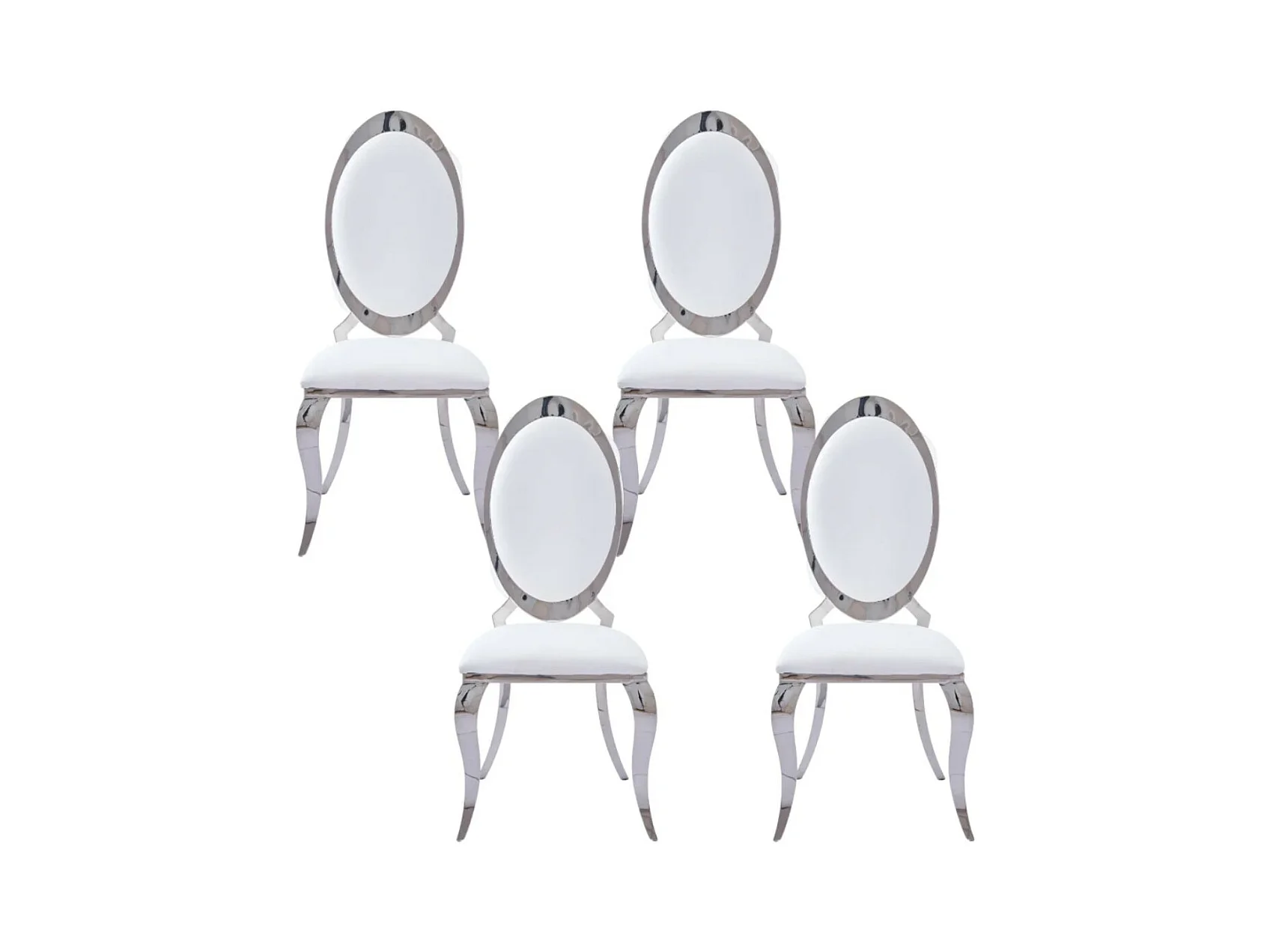 Chaise médaillon simili cuir et pieds métal argenté effet miroir Joliva - Lot de 4-Couleur Blanc