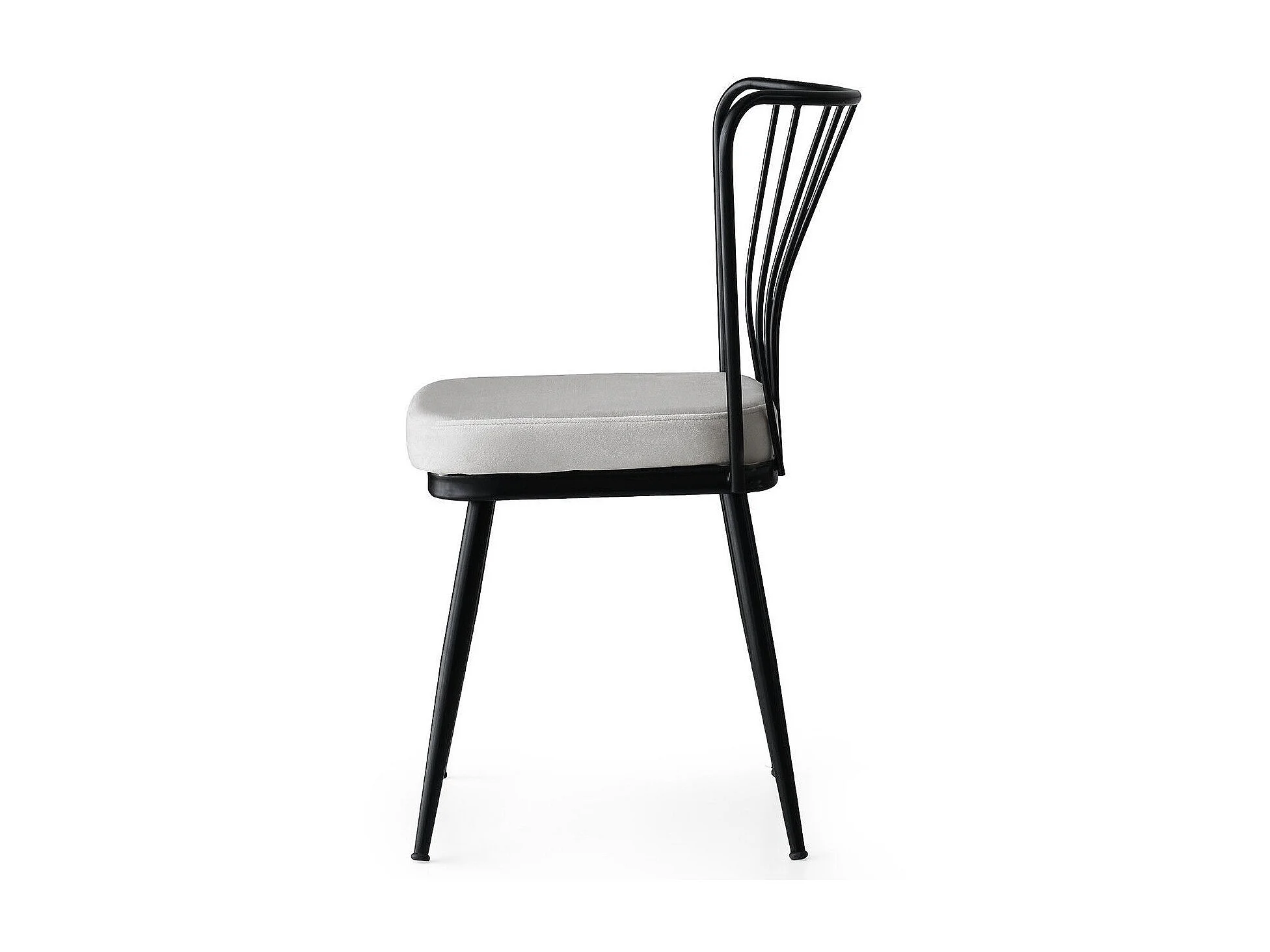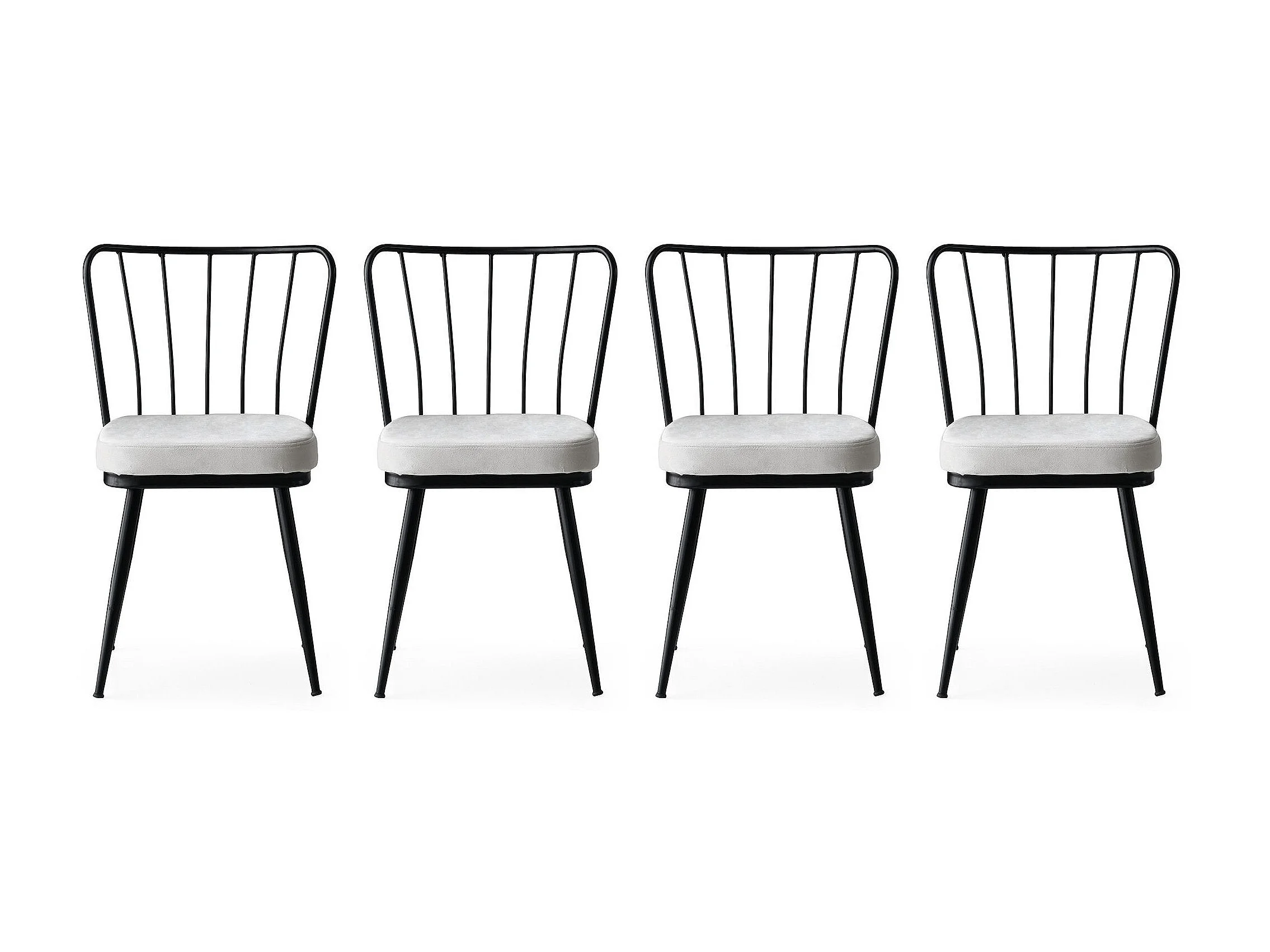 Chaise métal noir et assise velours blanc Manky - Lot de 4