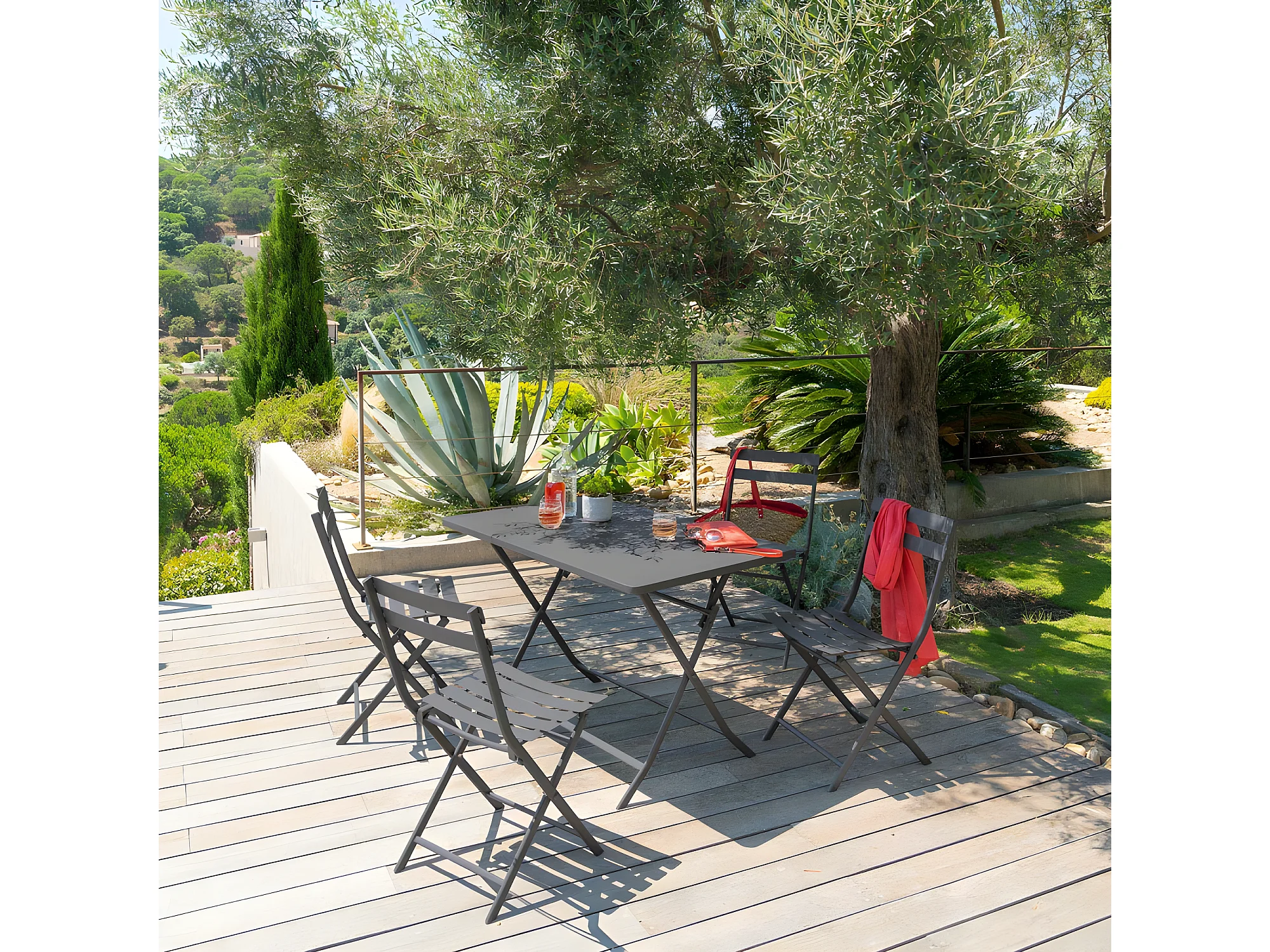 Table de jardin pliante métal 6 places. anthracite. Amelia. 140x80cm. traitement antirouille. lattes et bords arrondis