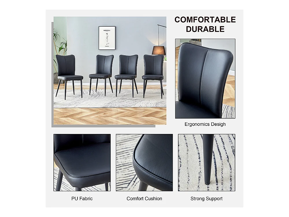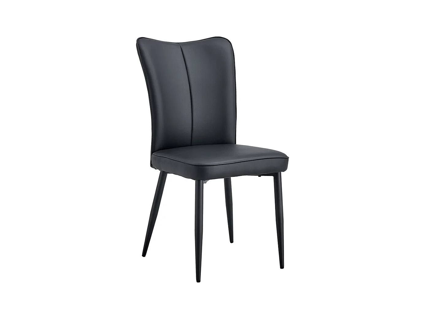 Chaise moderne minimaliste noir dossier rembourré cuir PU pieds métal noir polyvalente lot de 2