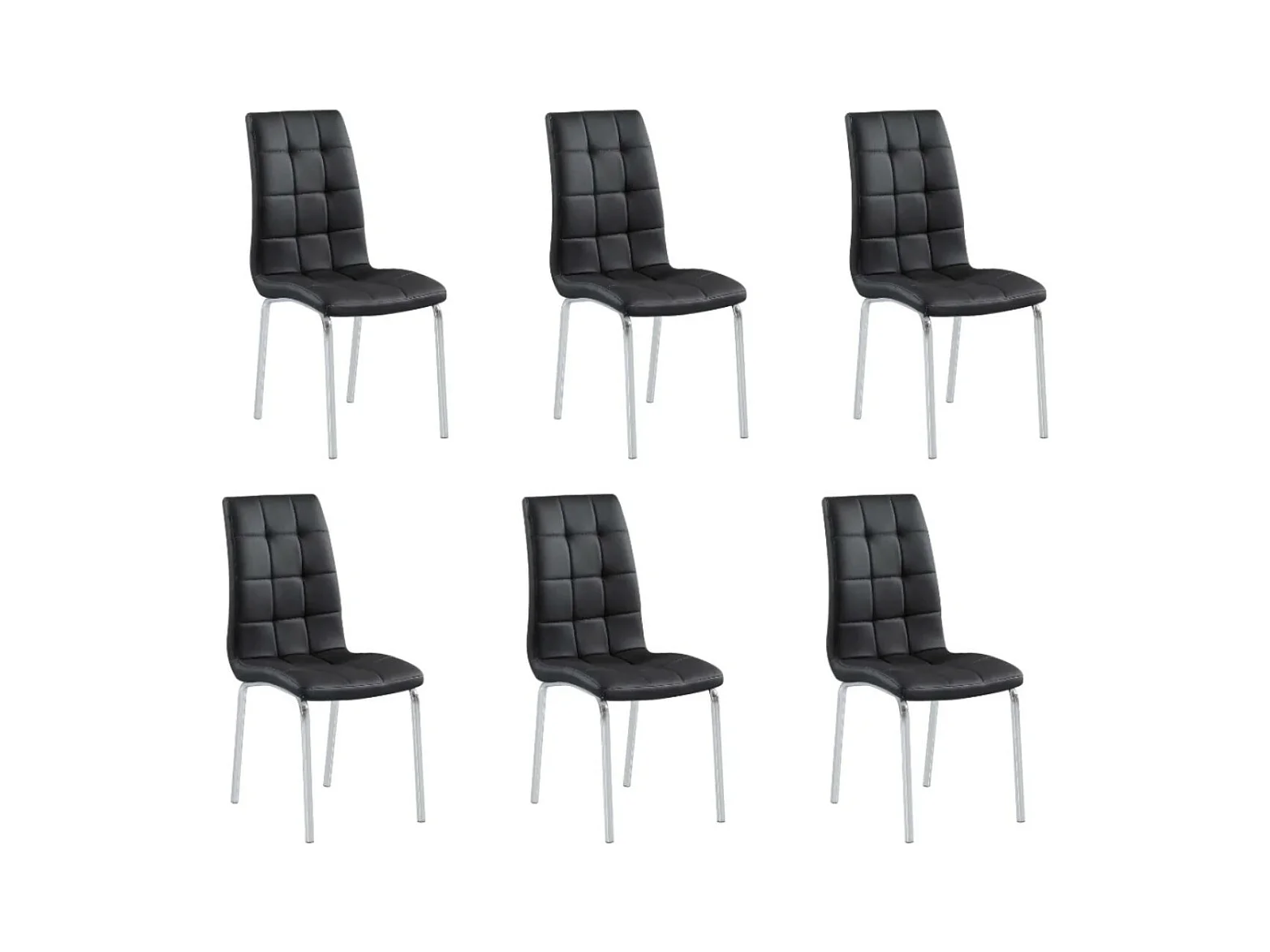 Chaise moderne simili cuir et pieds métal chromé Maeva - Lot de 6-Couleur Noir