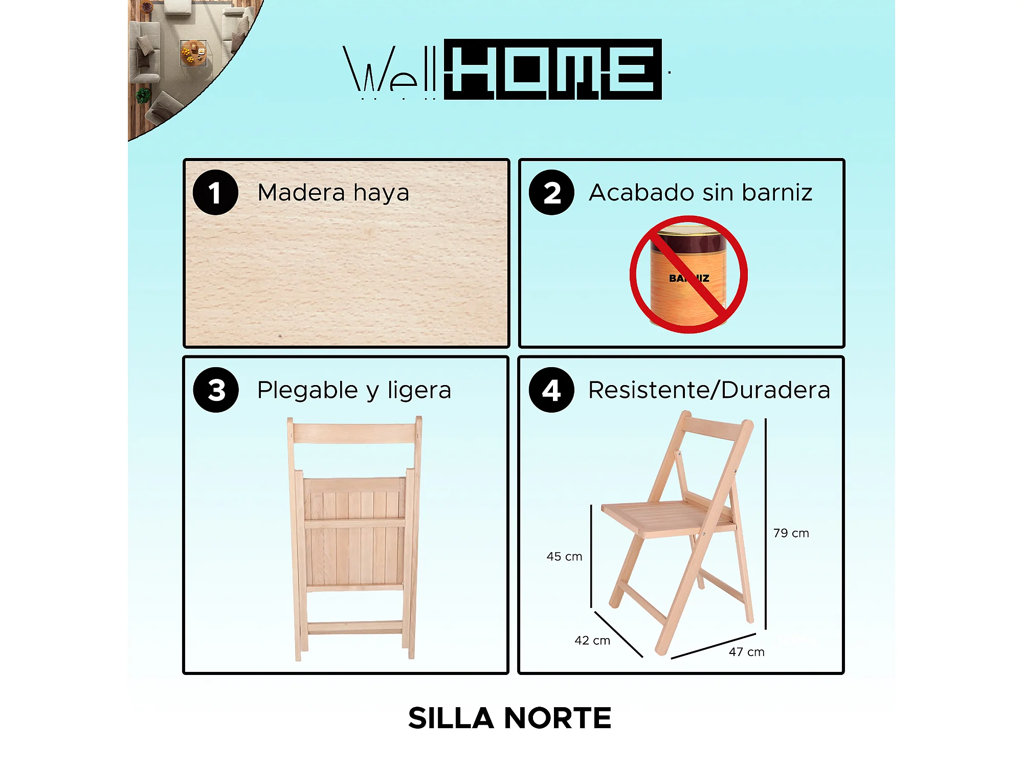 Chaise NORTE en bois de hêtre, finition vernis, 43x47x79 cm