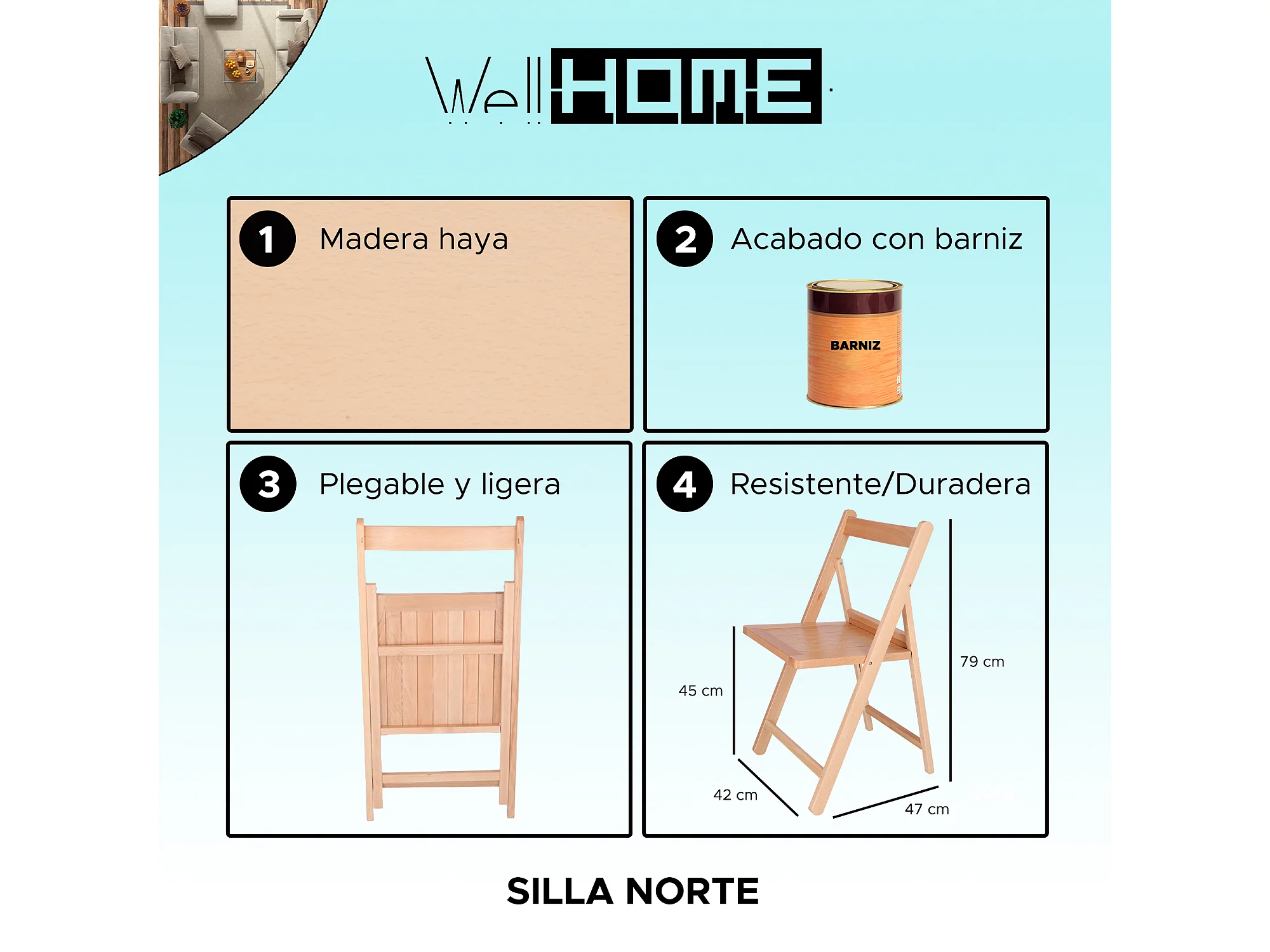 Chaise NORTE en bois de hêtre, finition vernis, 43x47x79 cm