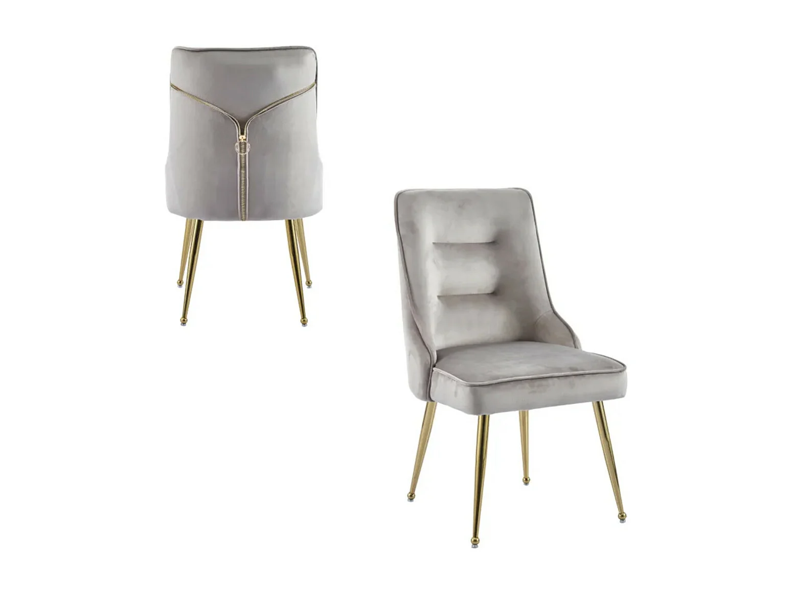 Chaise originale velours et pieds métal doré Farma - Lot de 2-Couleur Gris foncé