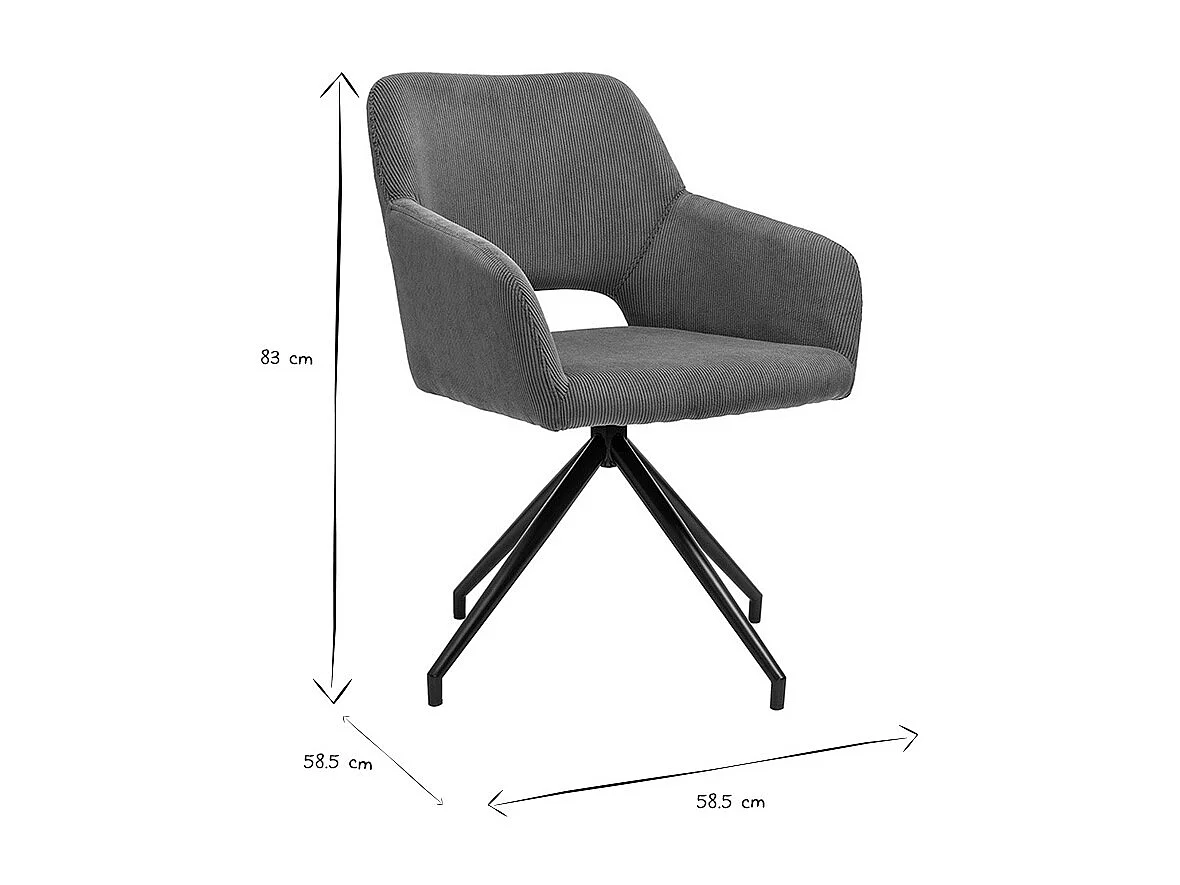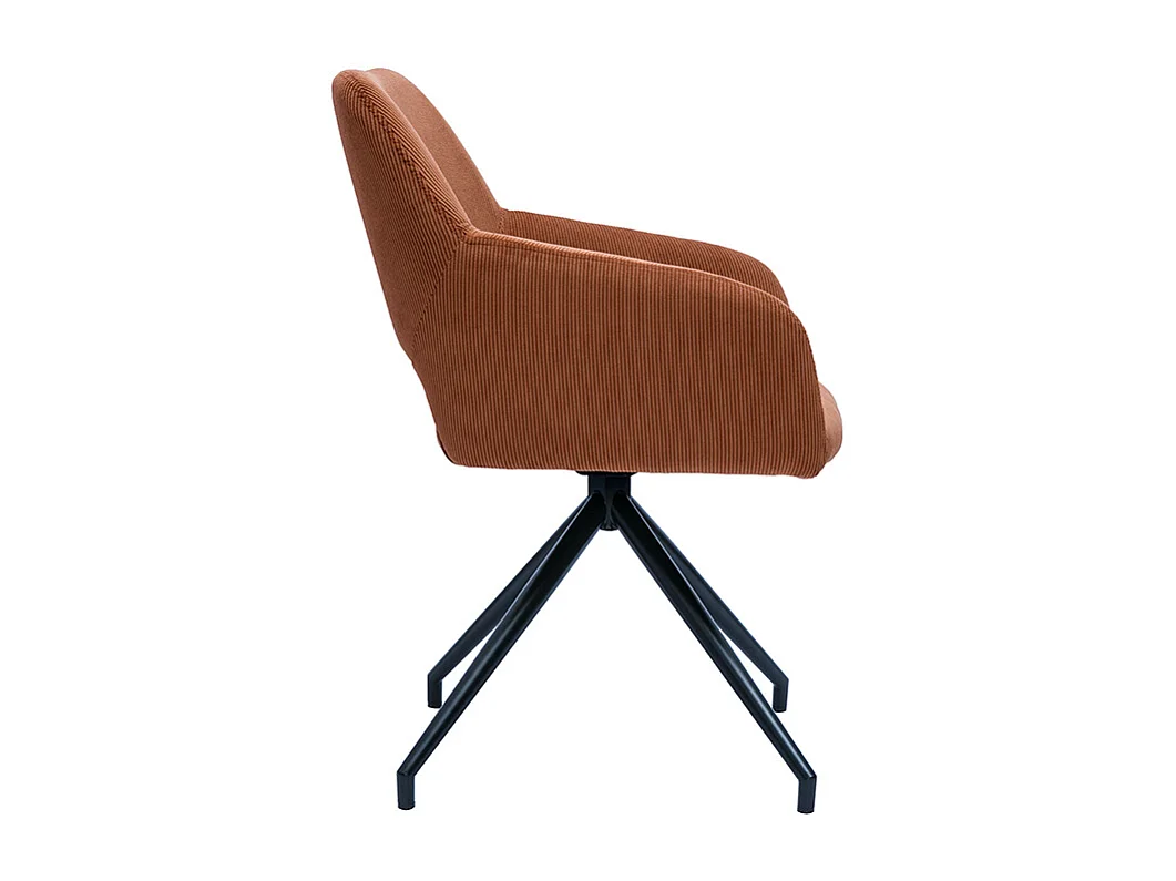 Chaise pivotante 360° en tissu velours côtelé terre brûlée et métal noir LAURETTE