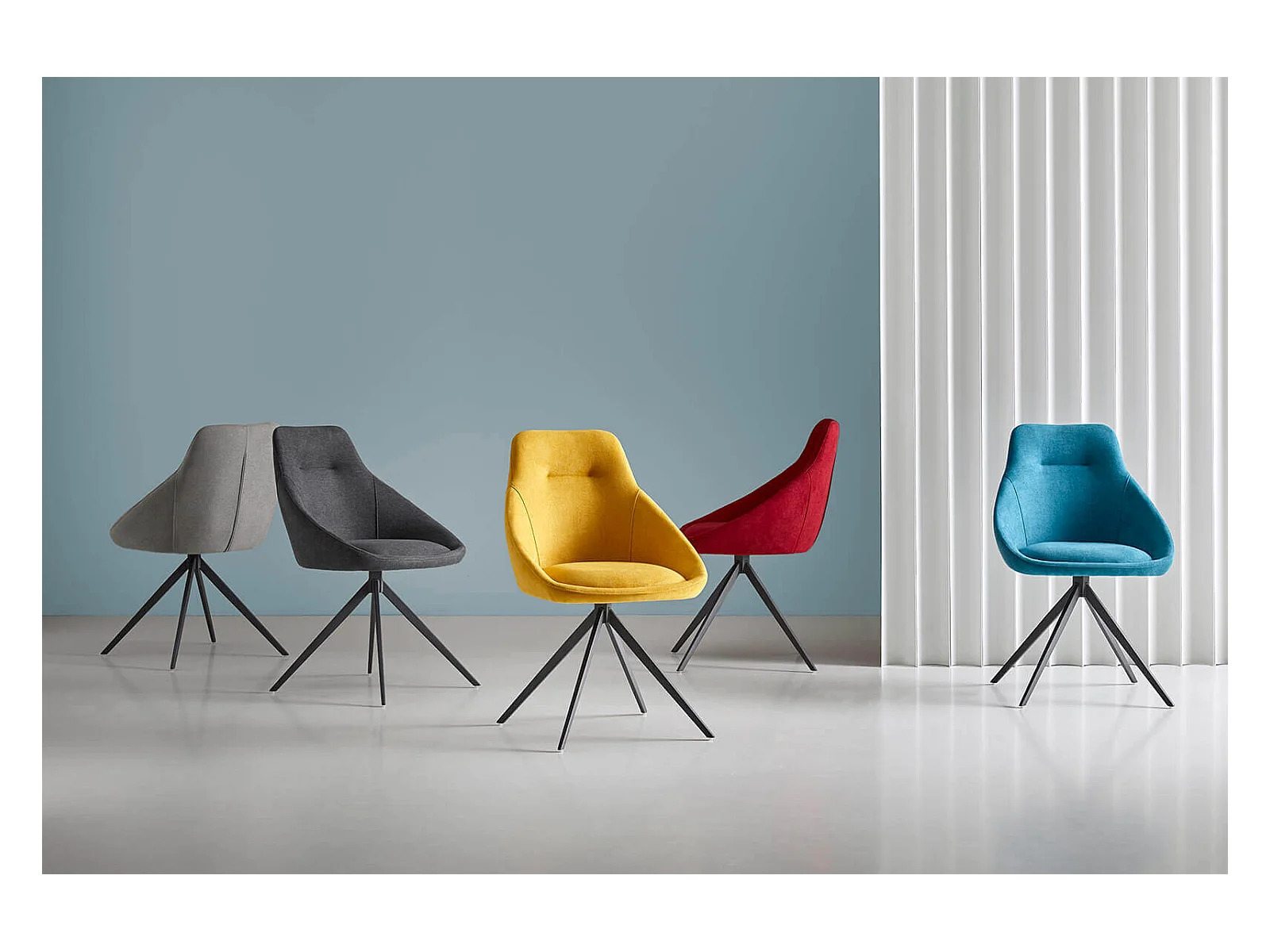 Chaise pivotante à 180º avec accoudoirs tissu gris foncé et pieds métal noir kalo
