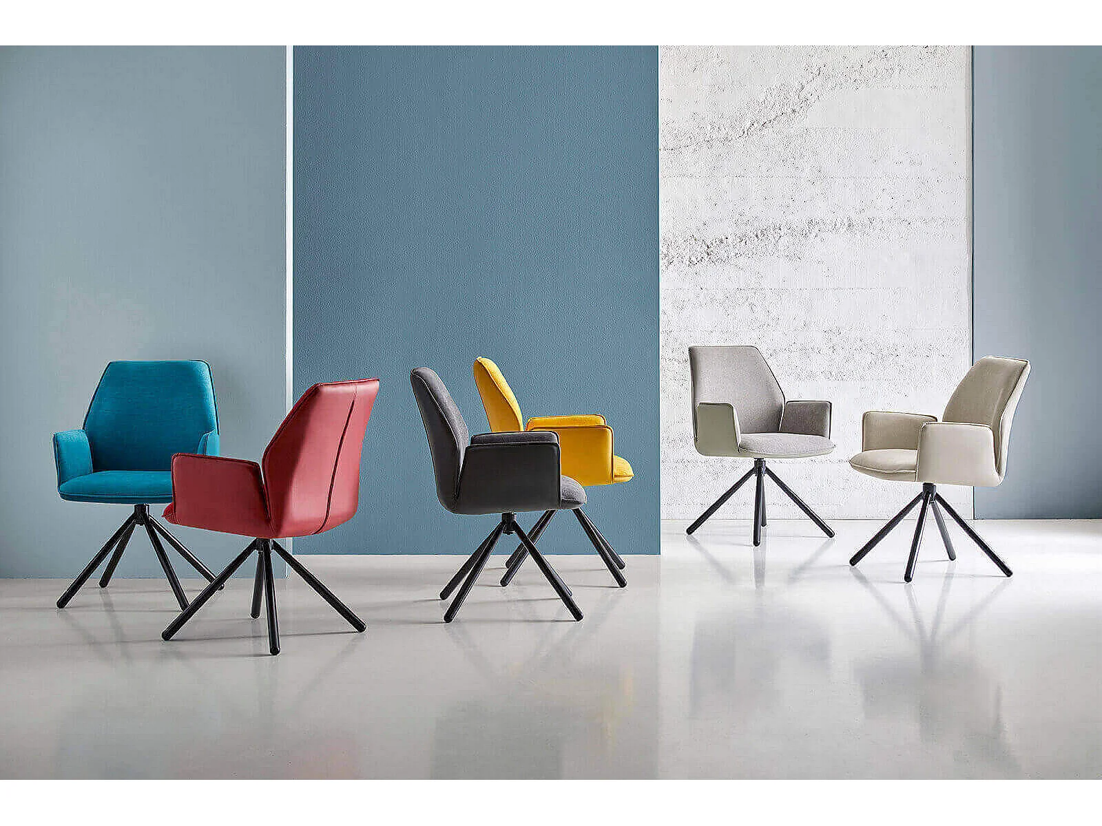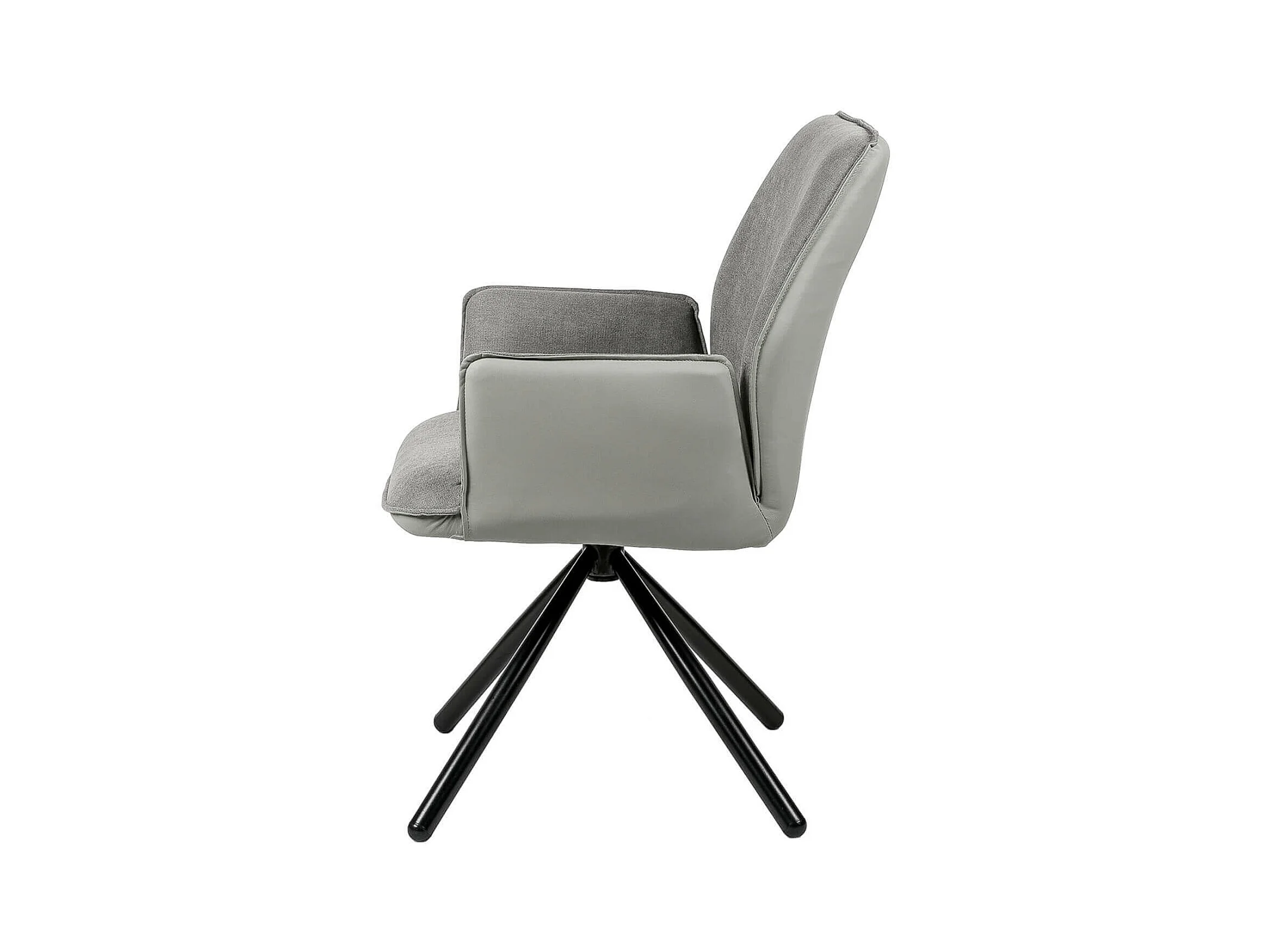 Chaise pivotante à 360º avec accoudoirs tissu gris clair et pieds métal noir Larko