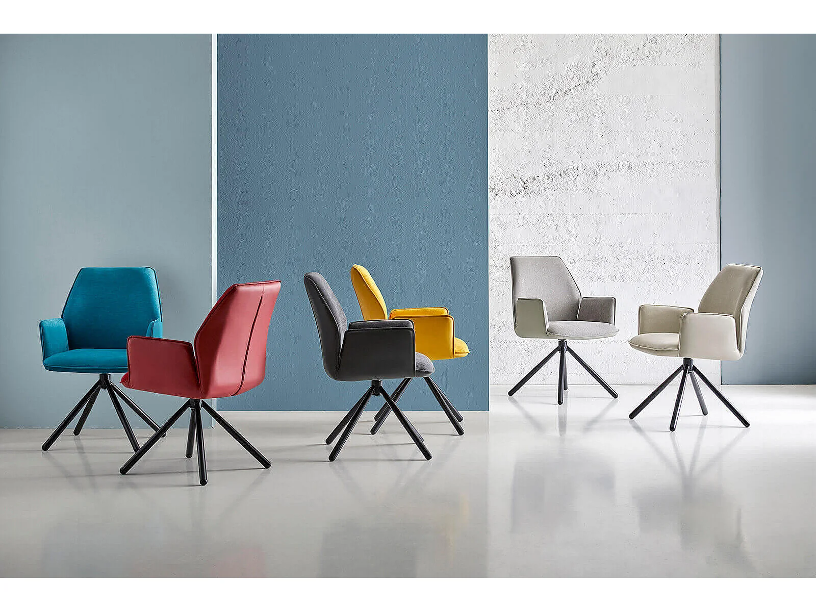 Chaise pivotante à 360º avec accoudoirs tissu gris foncé et pieds métal noir Larko