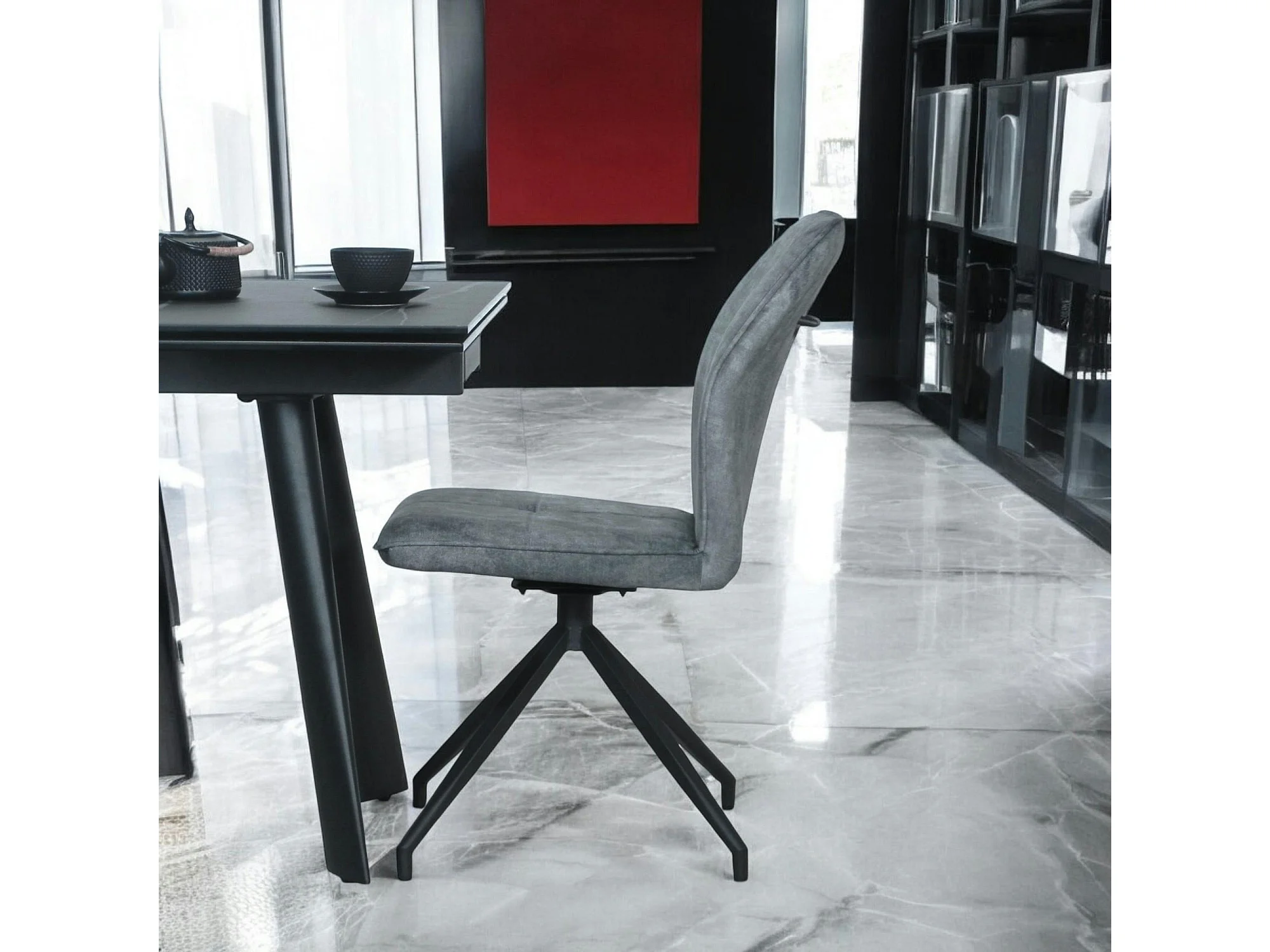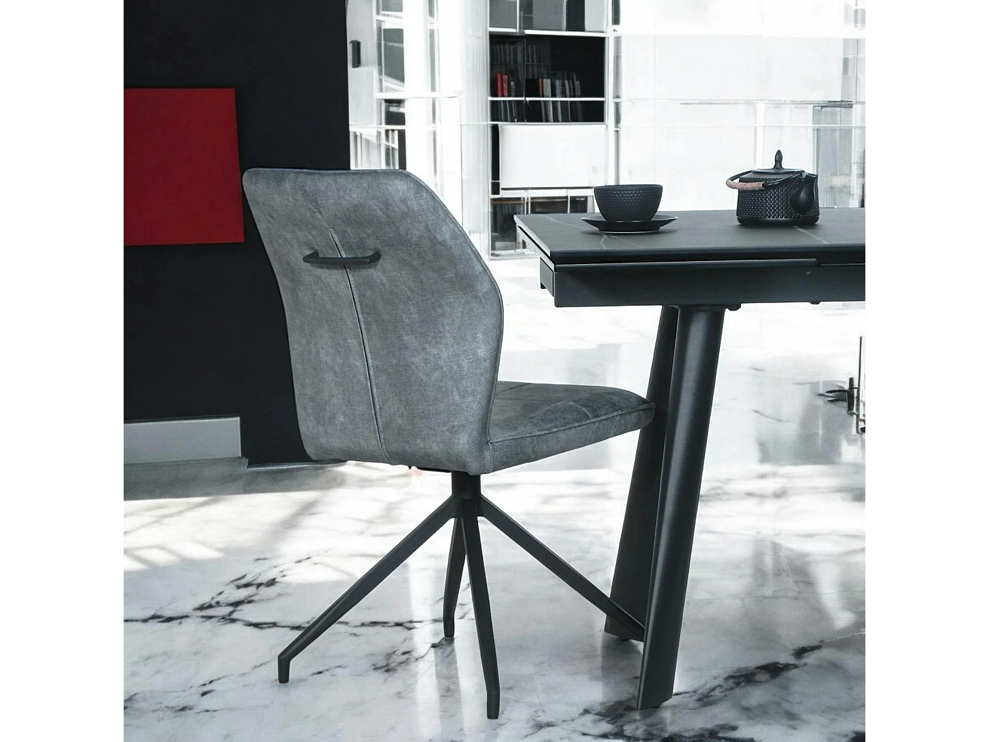 Chaise pivotante bleue en velours patiné avec poignée (lot de 2) LOMBARDIE