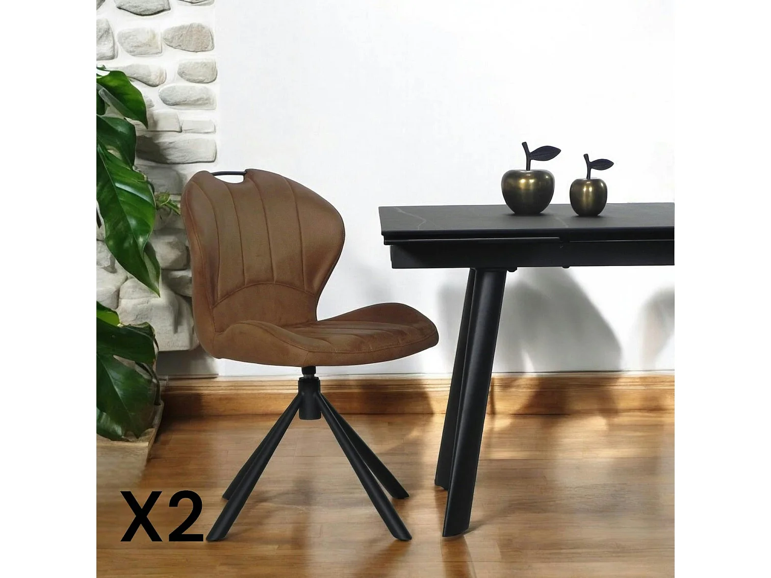 Chaise pivotante caramel avec dossier courbe, (lot de 2) LOMBARDIE