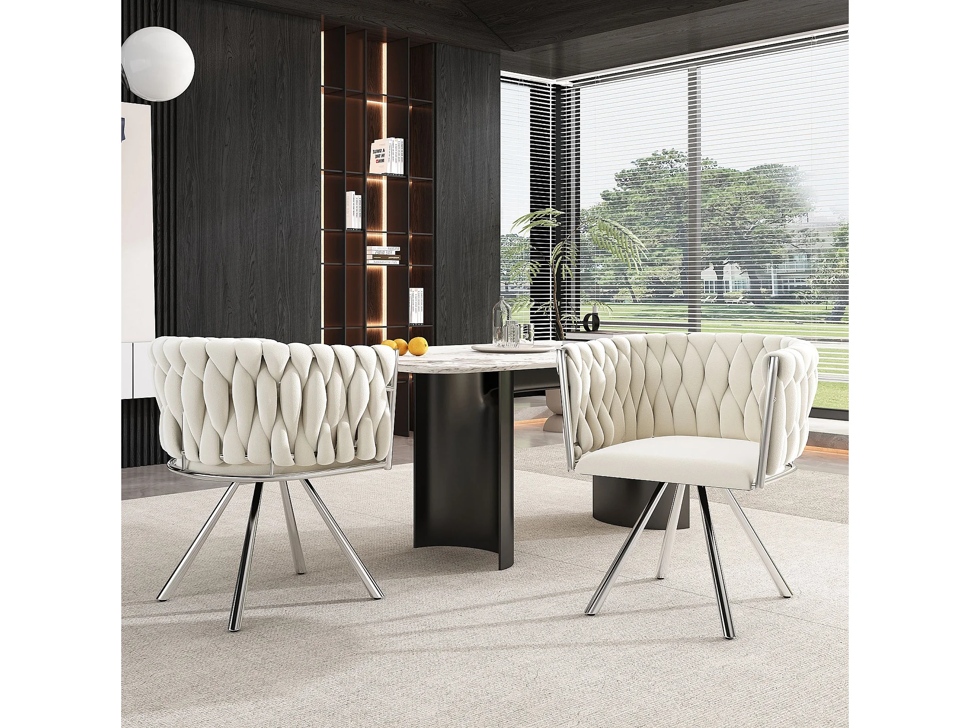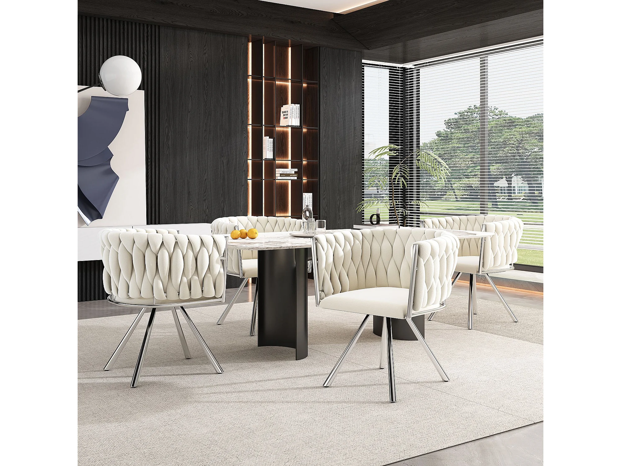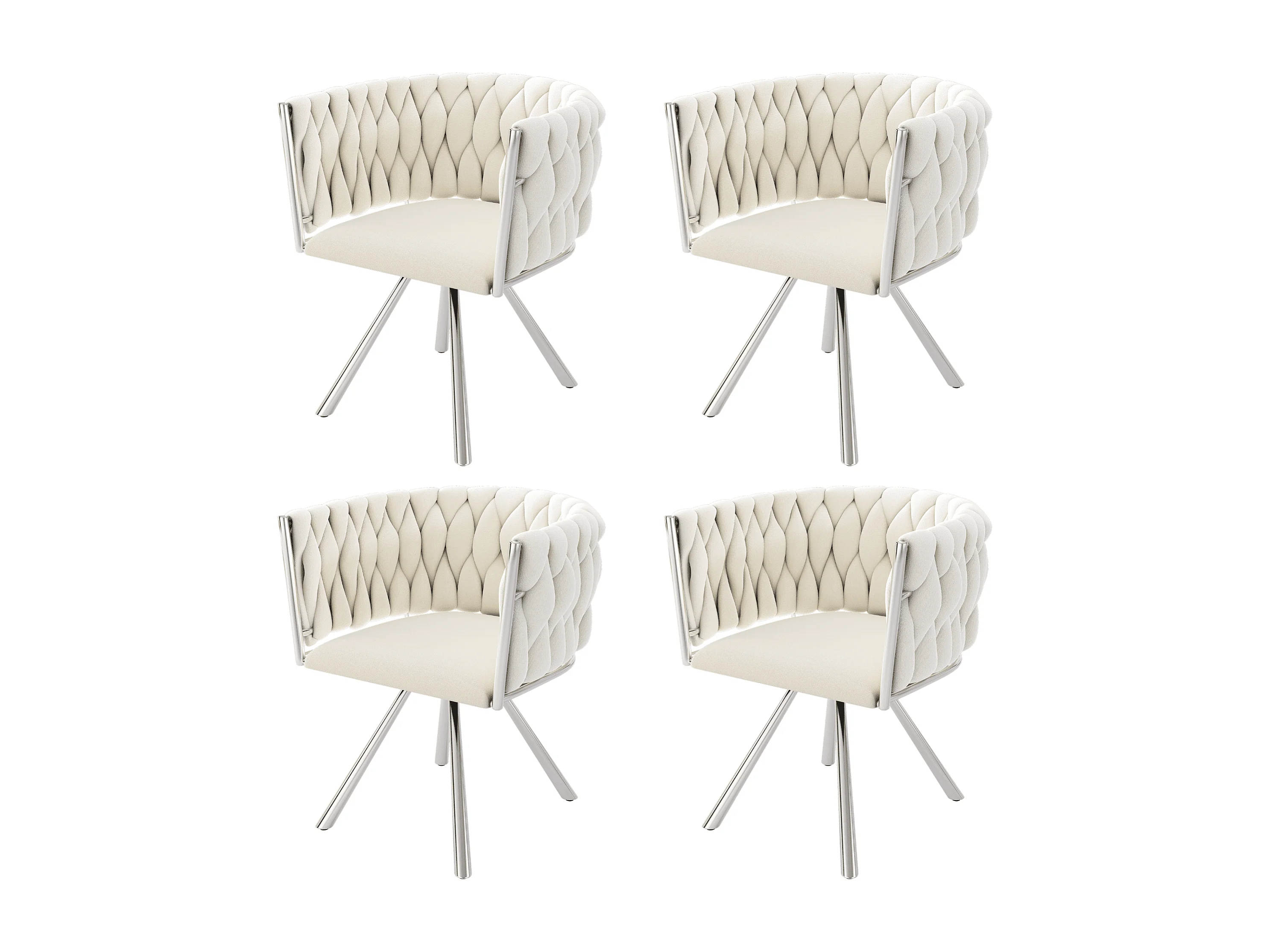 chaise pivotante,chaise de maquillage,chaise de salle à manger,chaise pivotante de loisirs, quatre pieds d'appui en métal, beige+argent,4pcs