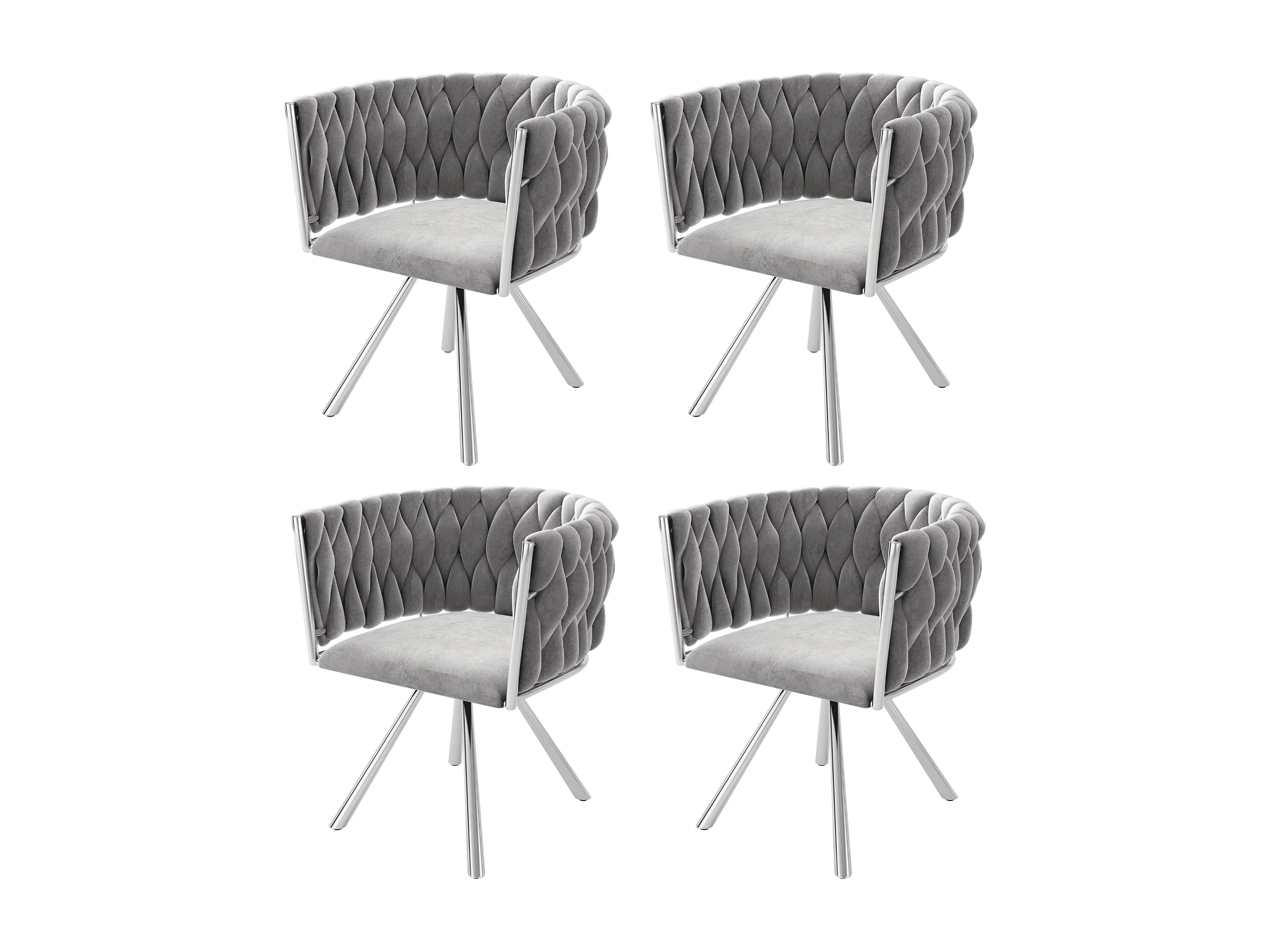 Chaise pivotante,chaise de maquillage,chaise de salle à manger,chaise pivotante de loisirs, quatre pieds d'appui en métal, gris+argent,4pcs