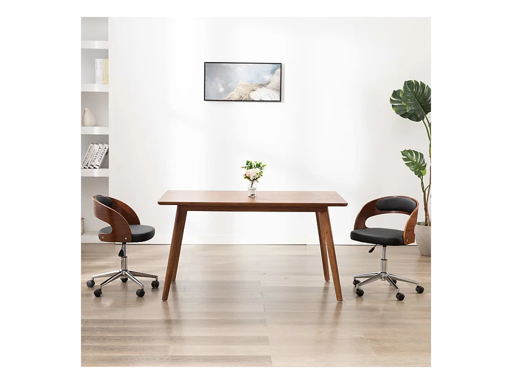Chaise pivotante de bureau Noir Bois courbé et similicuir