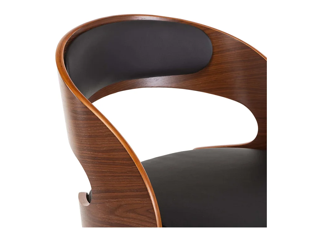 Chaise de bureau pivotante en bois foncé et PU noir - Louis