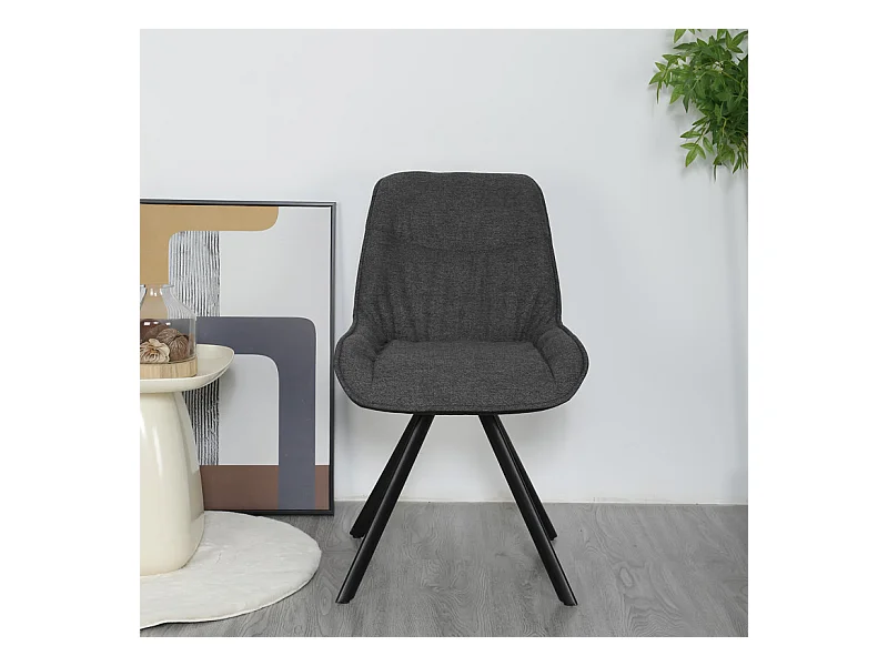 Lot de 2 chaises pivotantes en tissu gris foncé pieds métal - JADEN