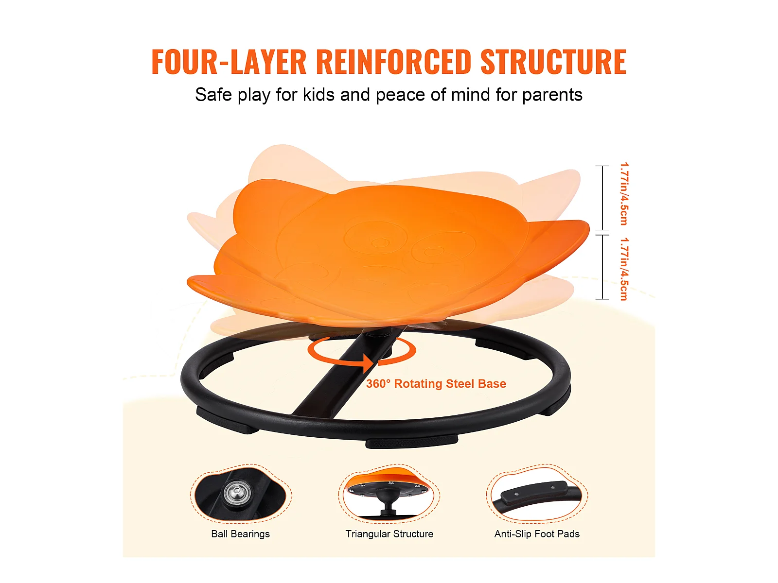 Chaise Pivotante pour Enfants SucceBuy Éléphant, D'une Capacité de 100 kg, une Chaise Pivotante Sensorielle en orange
