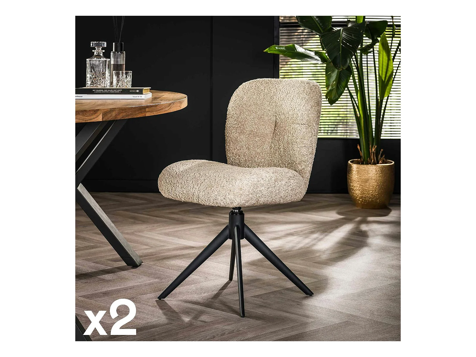 Chaise pivotante rembourrée en bouclette sable (lot de 2) GALWAY