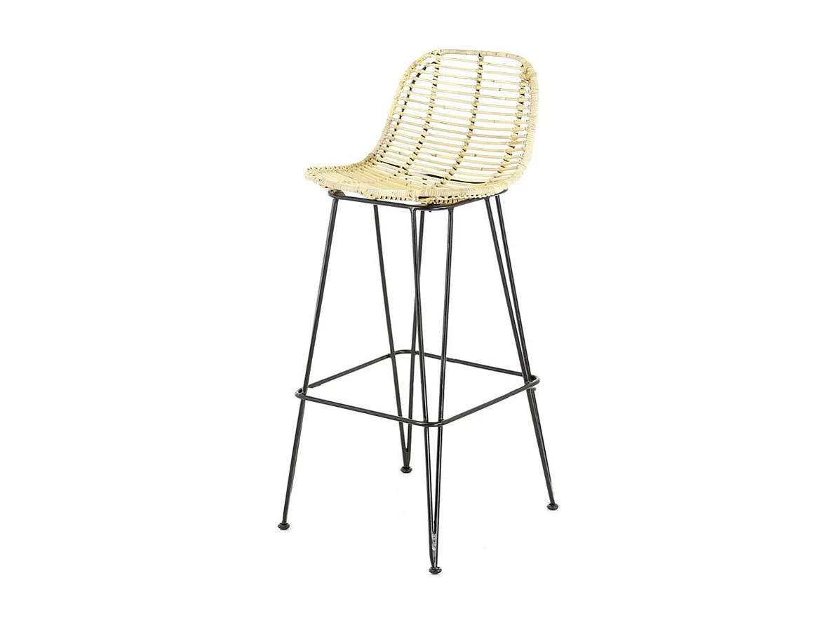 Tabouret de Bar osier naturel et pieds métal noir Randy - Design tendance