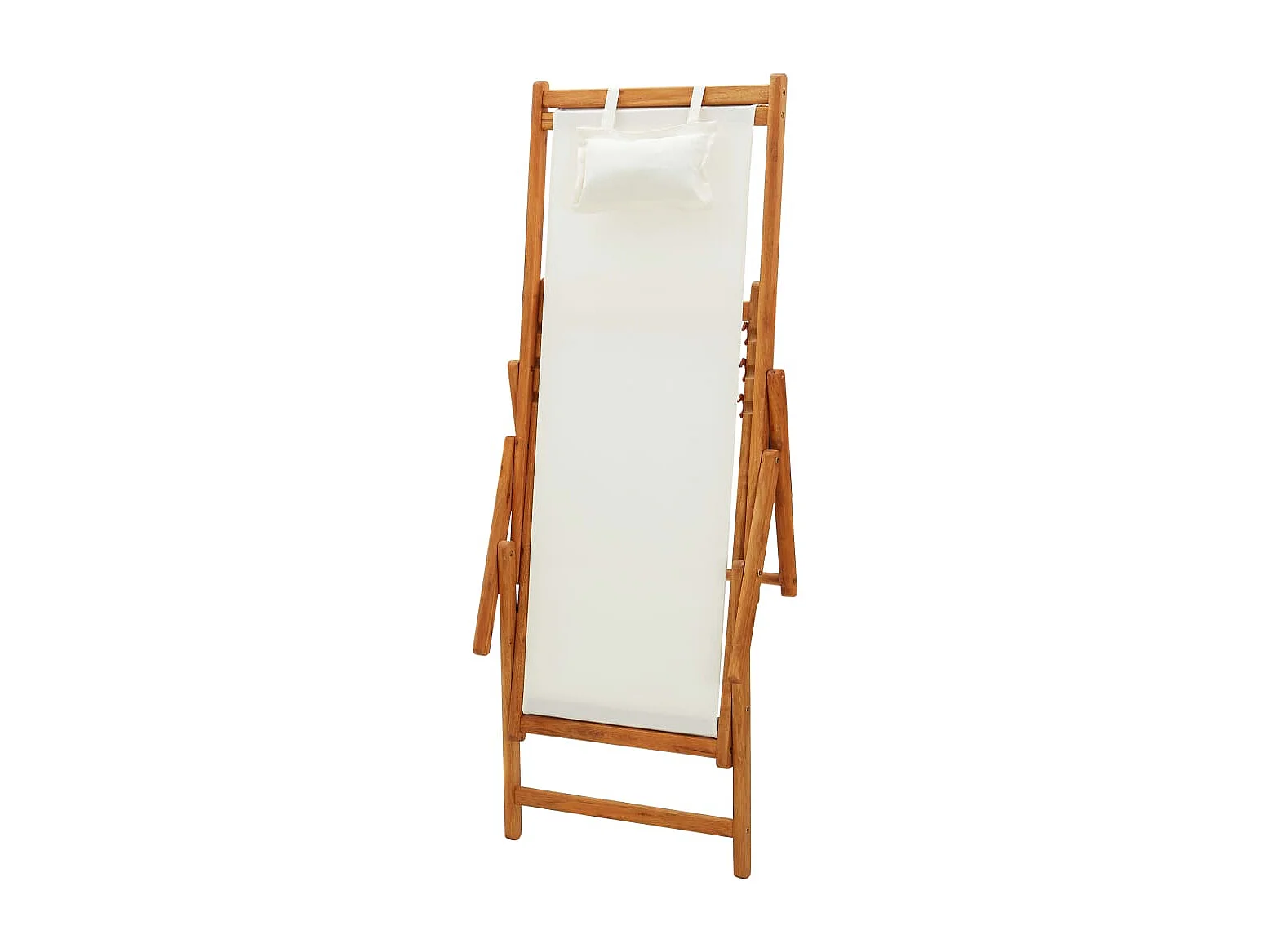 Chaise pliable de plage Bois d'eucalyptus solide et tissu Crème