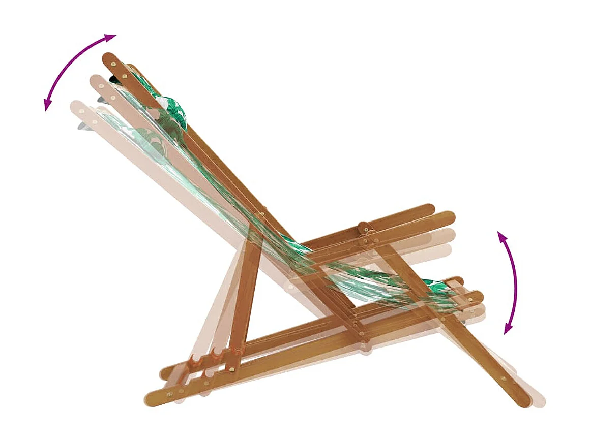 Chaise pliable plage motif de feuilles bois d'eucalyptus/tissu