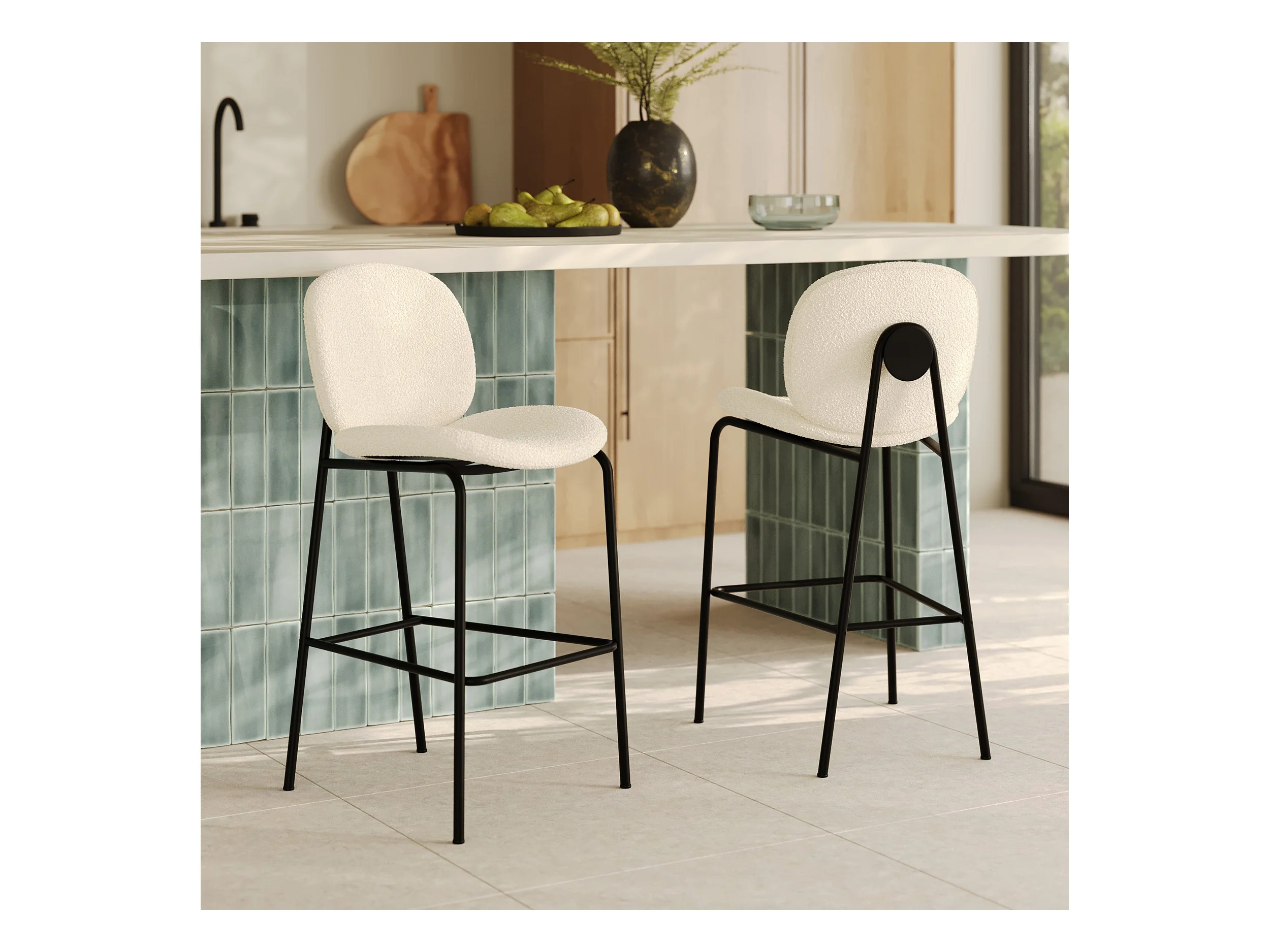 Lot de 2 chaises pour îlot central en tissu bouclé beige 63,5 cm - Iris