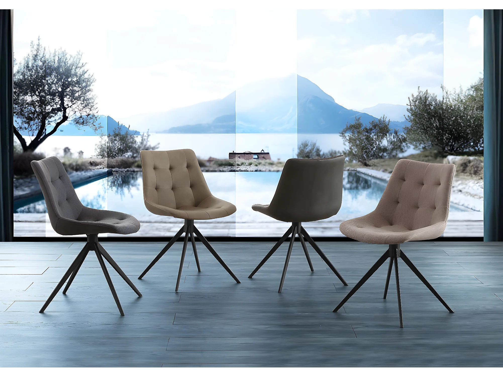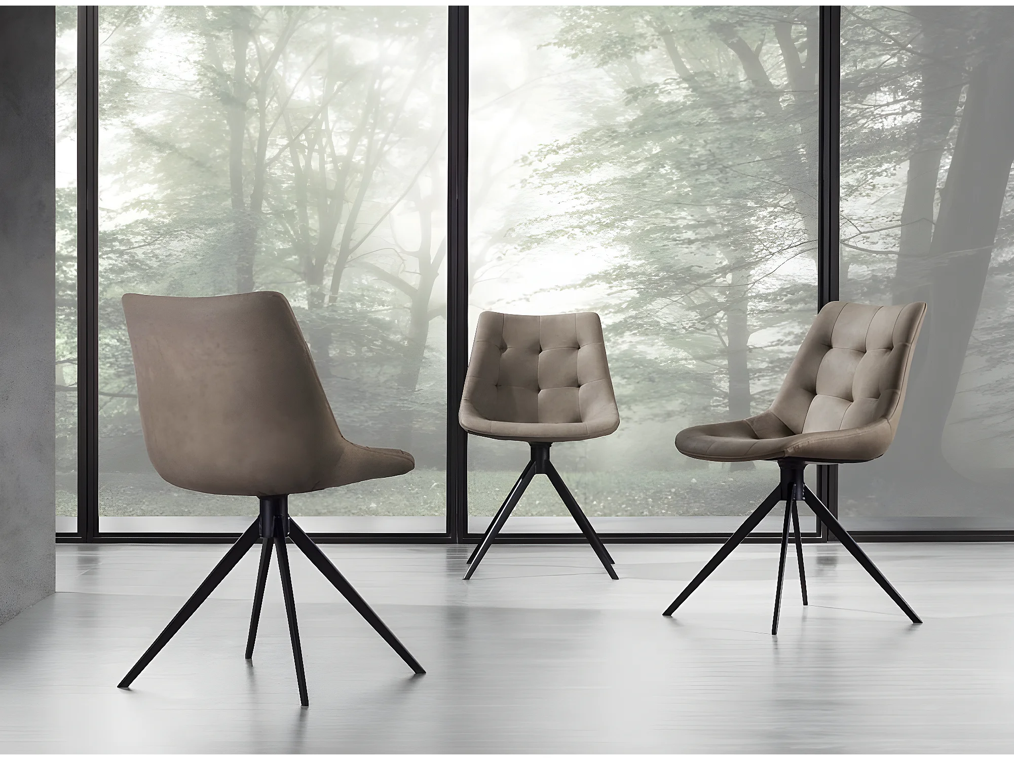 Chaise rembourrée en tissu et pieds métal noir Kazy - Lot de 2-Couleur Gris