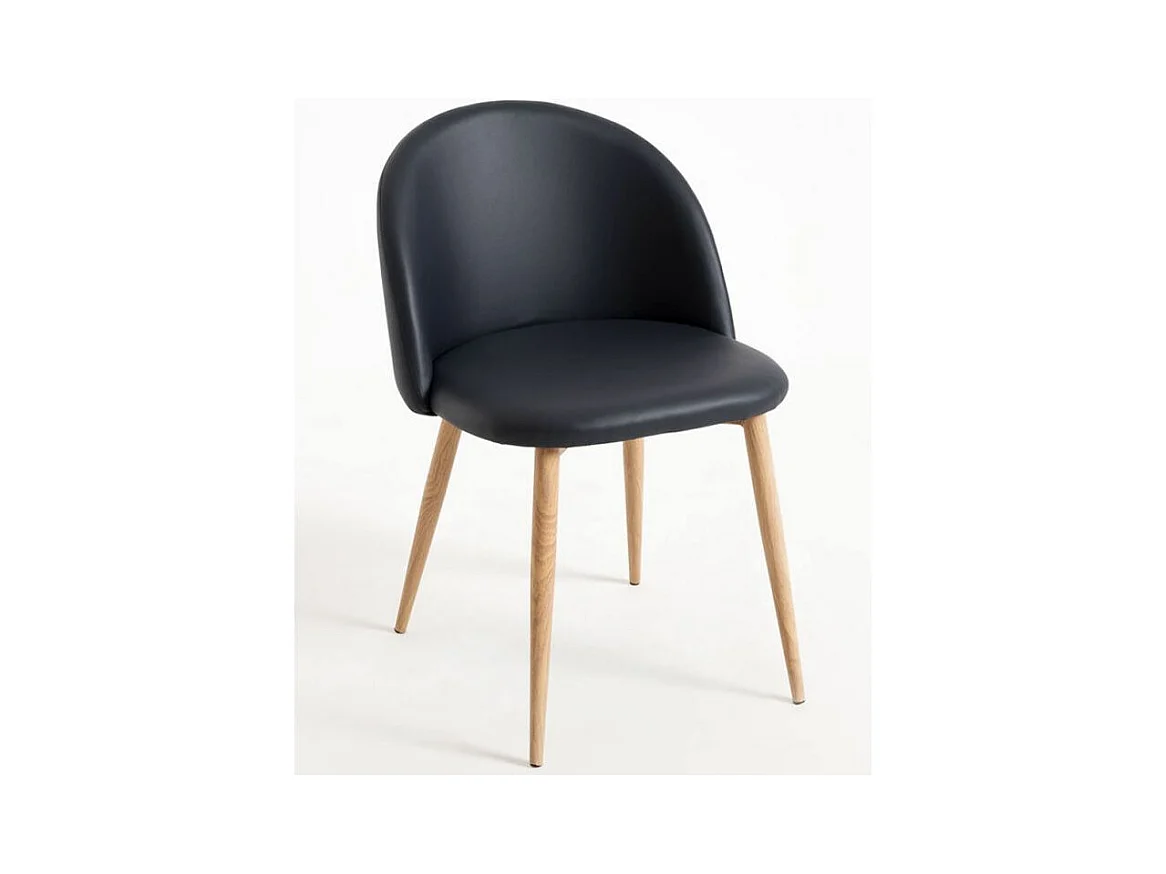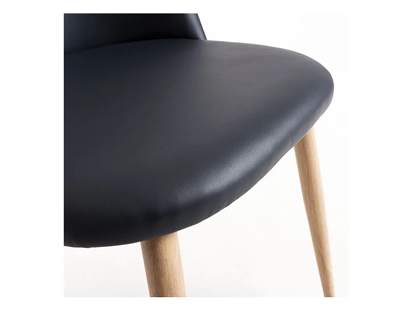 Lot de 2 chaises Kazon - Simili cuir élégant et pieds métal effet bois clair-Couleur Noir