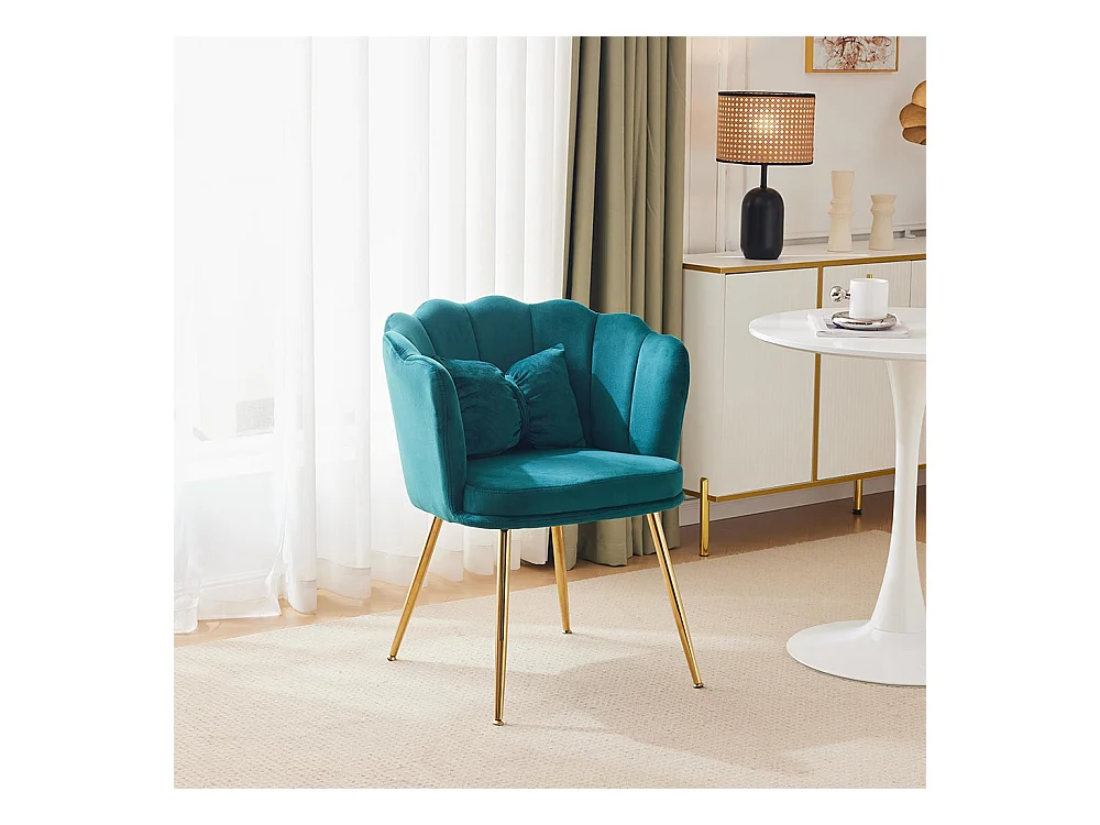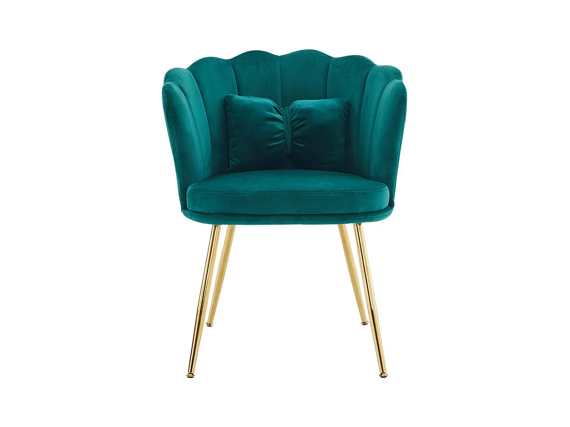 Chaise rembourrées avec dossier en forme de pétale de pieds en métal doré et de coussins en forme de papillon Vert