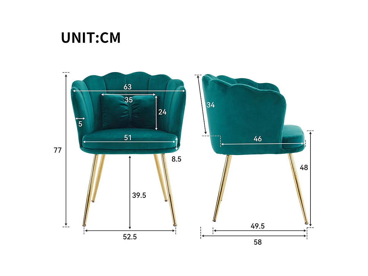 Chaise design en velours vert avec piètement doré et noir Amapola