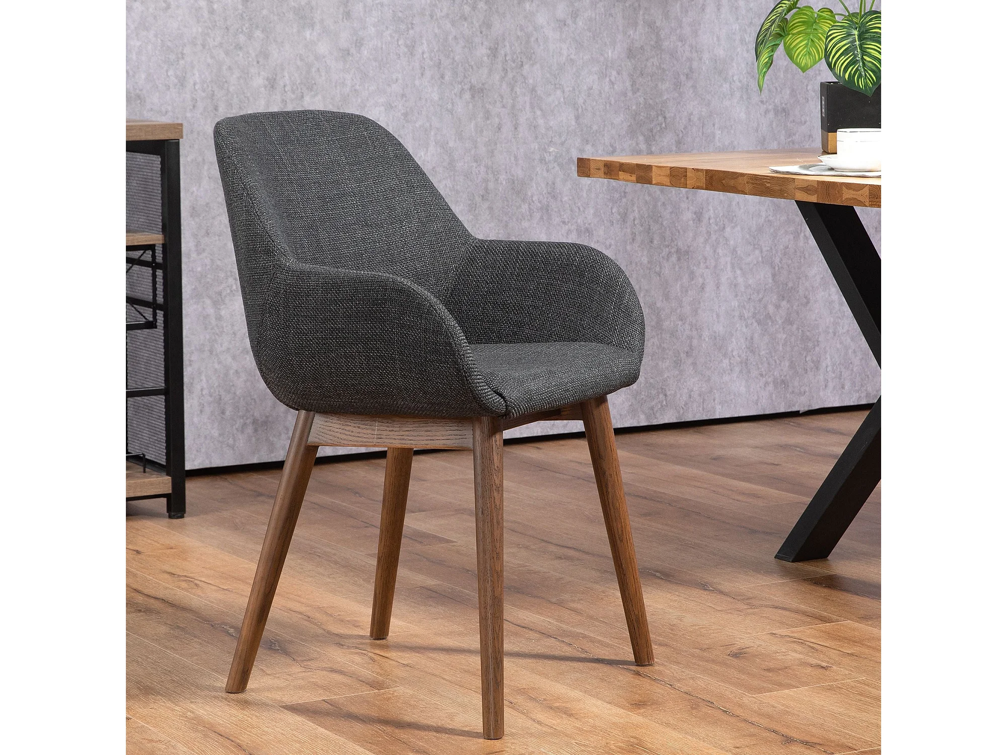 Chaise repas accoudoirs tissu noir pied chêne foncé MALVA