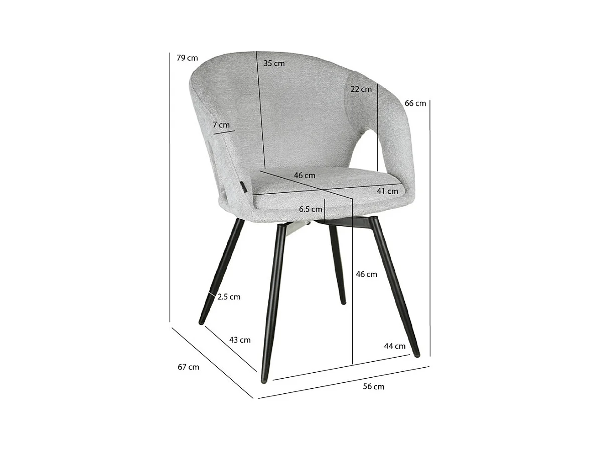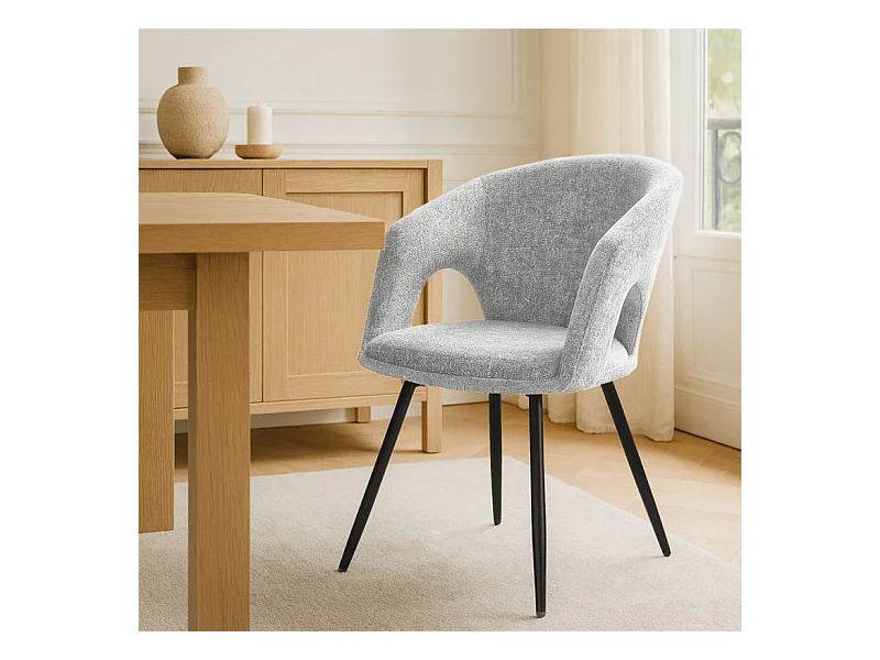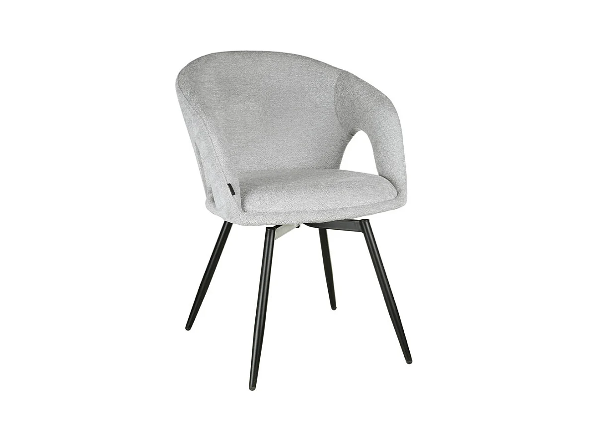 Chaise rotative 180° en tissu doux gris clair et pieds métal - ALEX