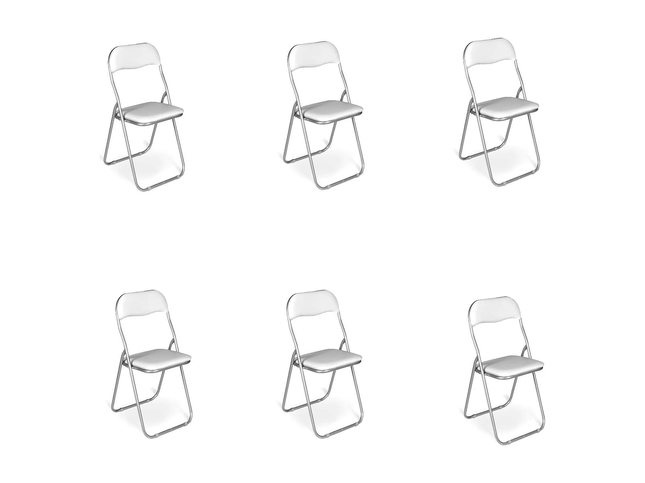 Lot de 6 chaises pliantes Dgraf, Fauteuil gain de place, Chaise invité, Siège de réunion en simili cuir, 43x47h80 cm, Blanc