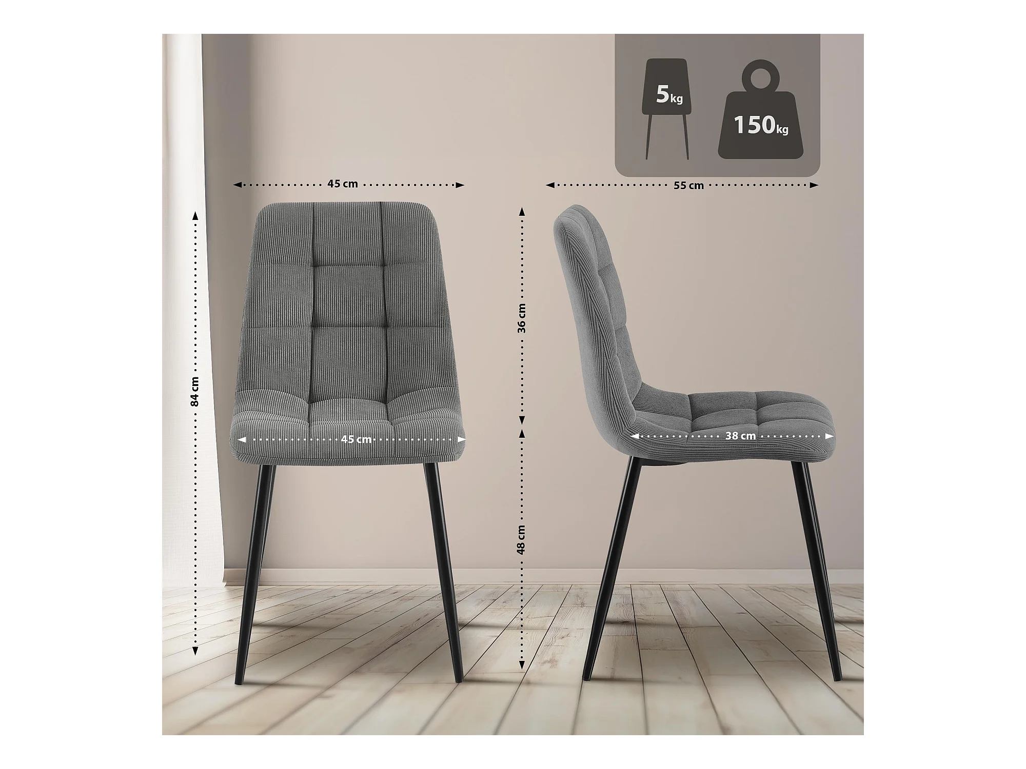 chaise salle à manger - Velours & Blanc - Gris - Toulouse