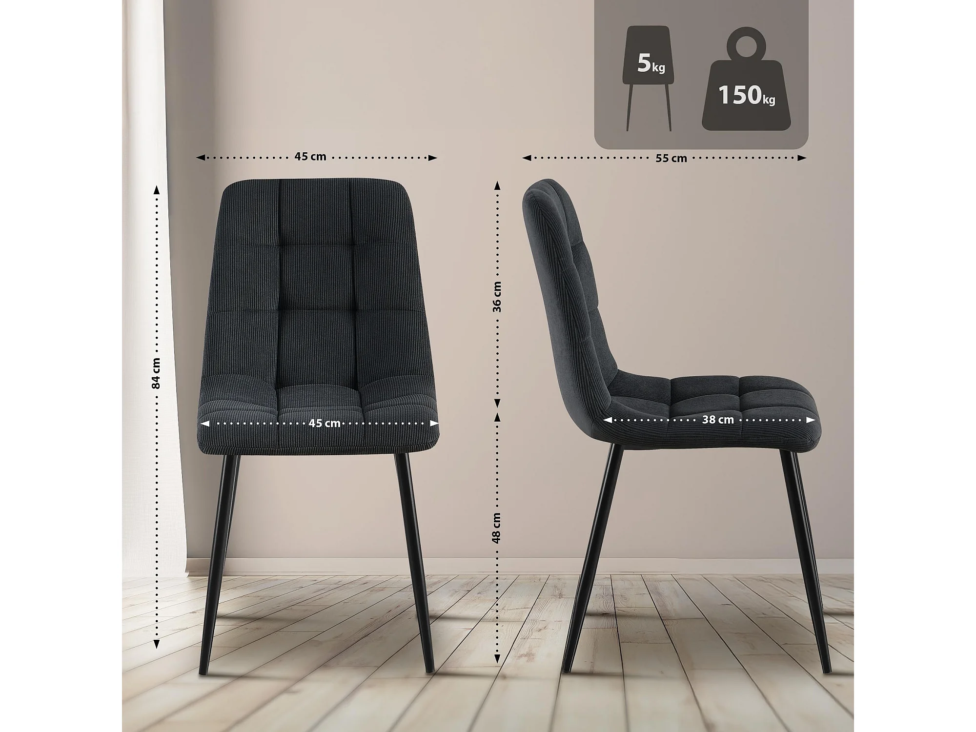 Chaise tissu noir