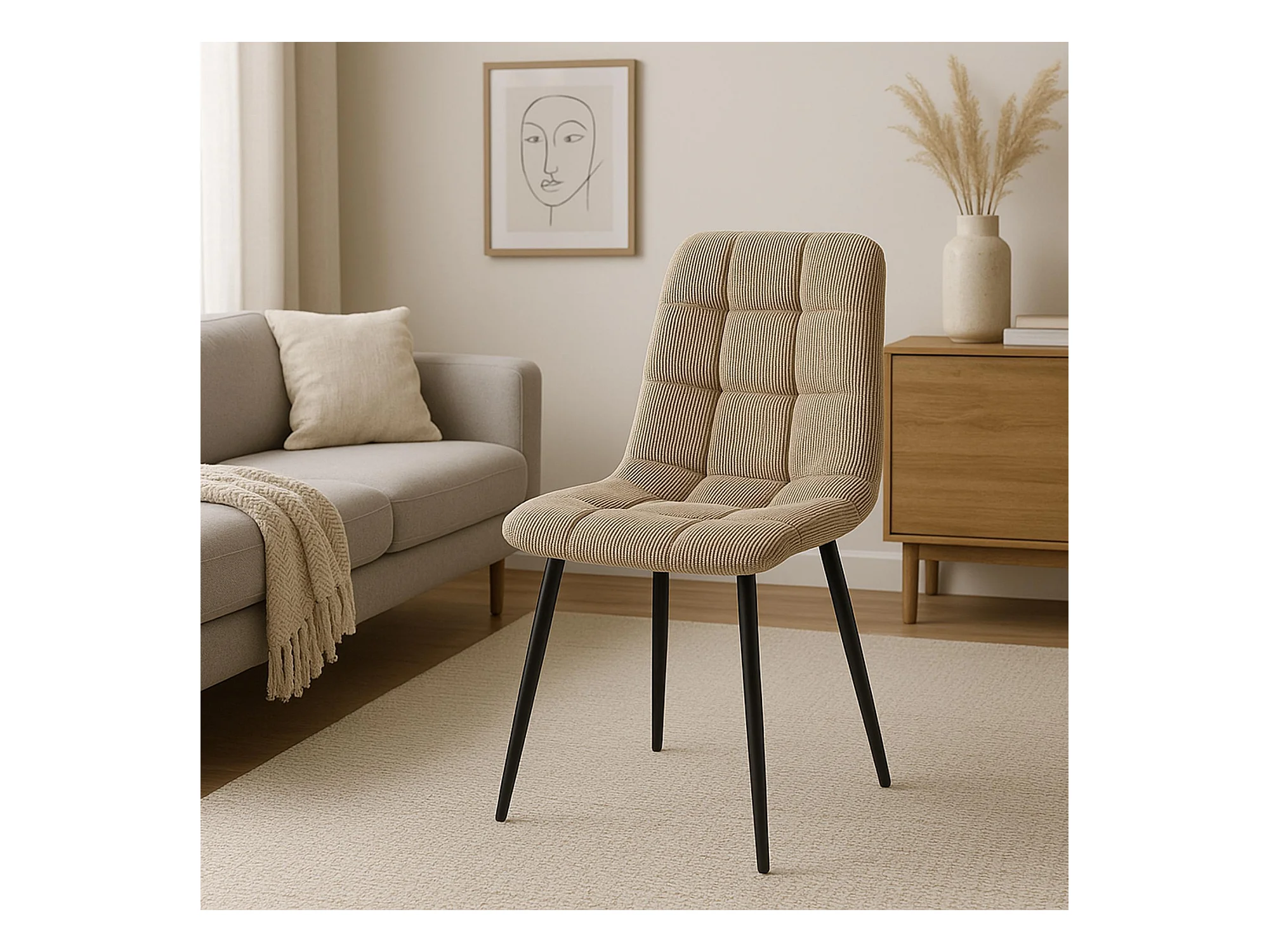Chaise revêtement tissu pour salle à manger coloris sable. Collection HARDIN