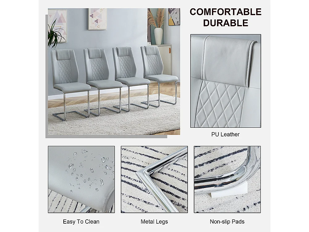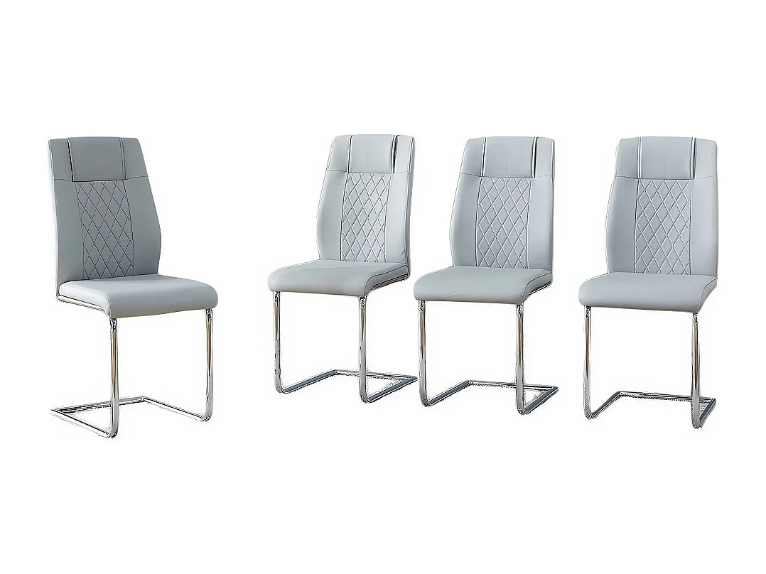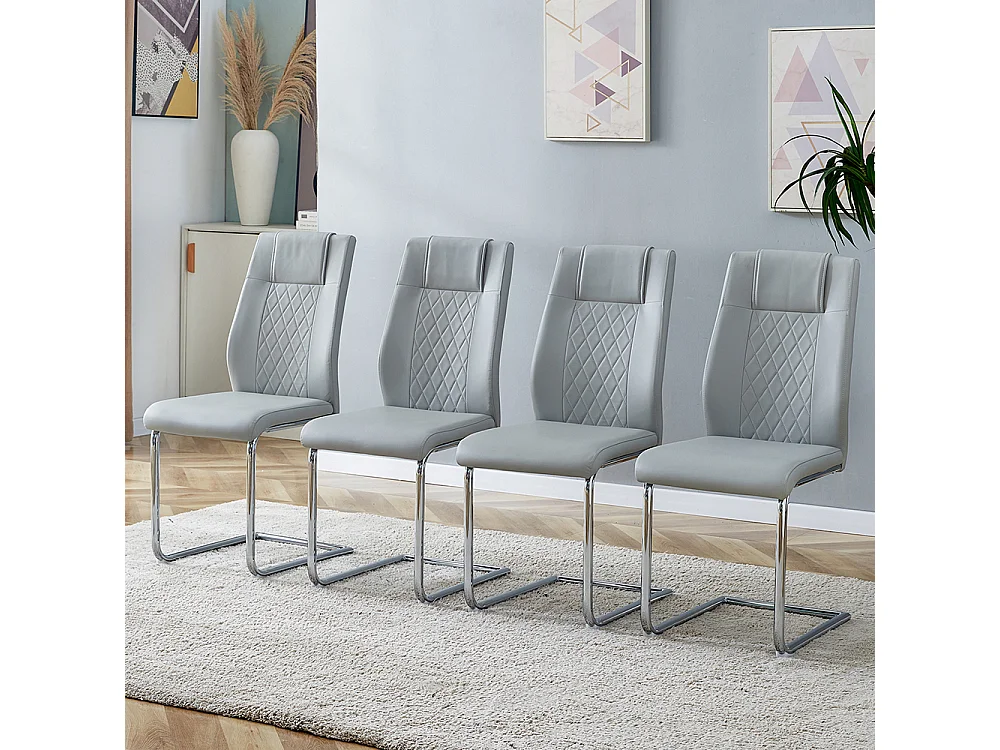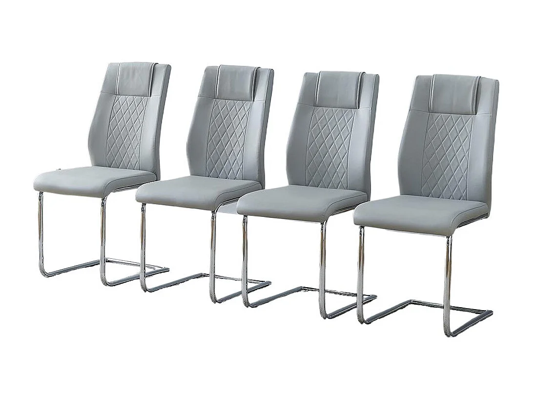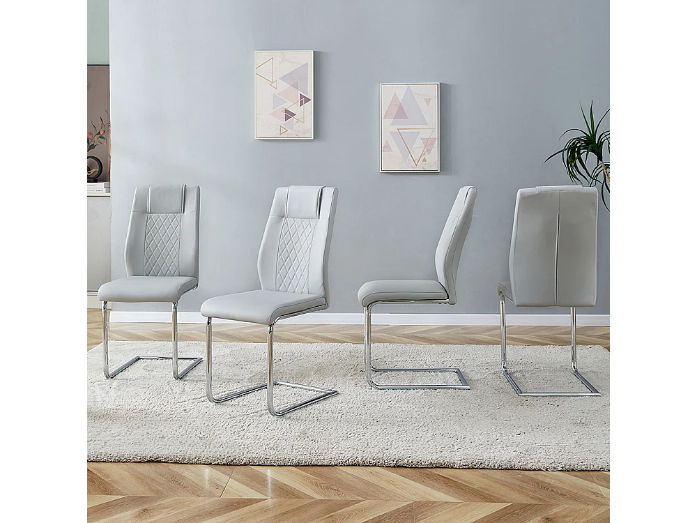 Chaise salle à manger PU gris clair style nordique lot de 4 dossier maille pieds métal argenté antidérapants