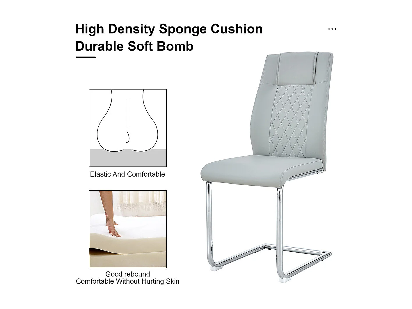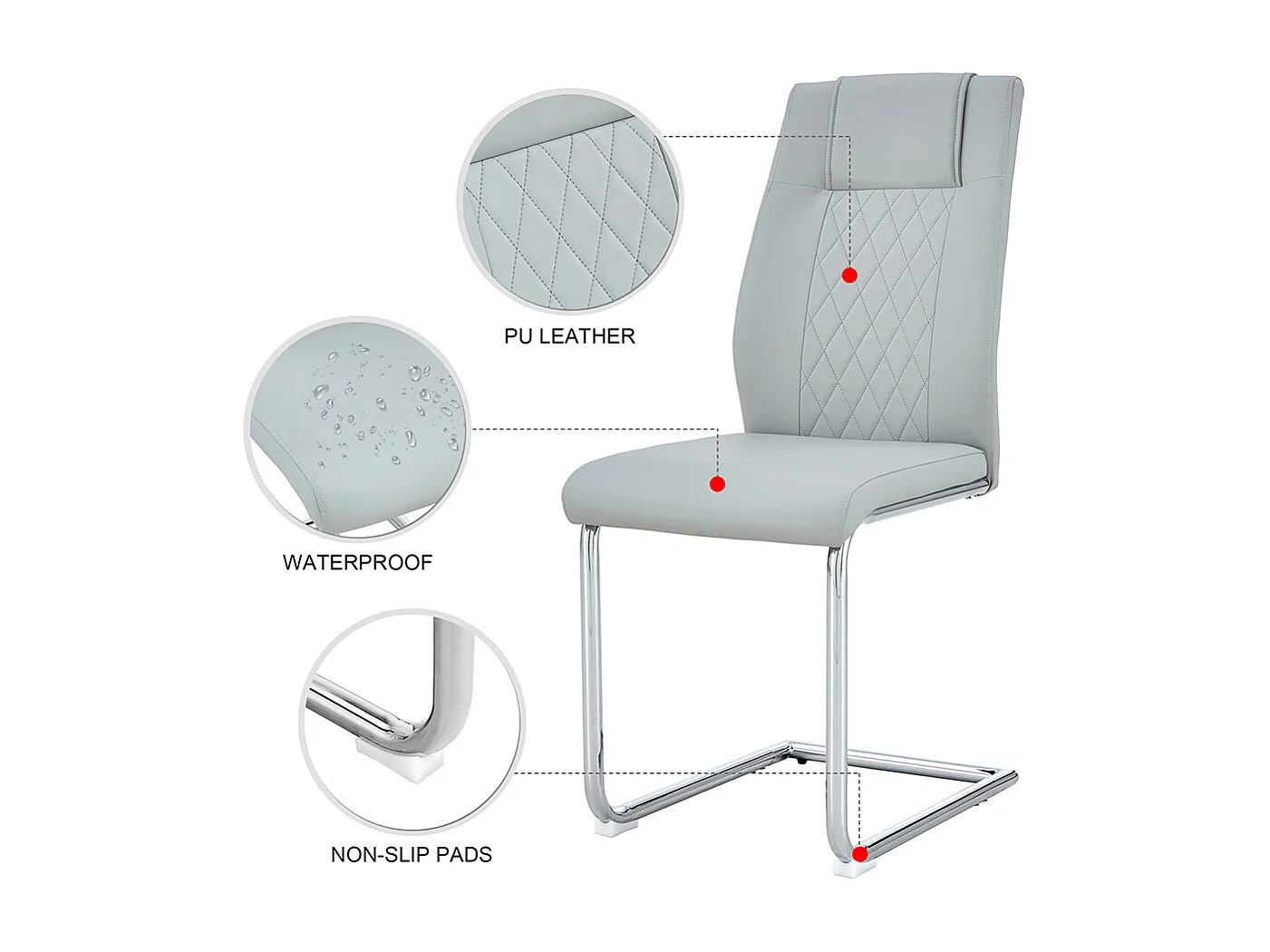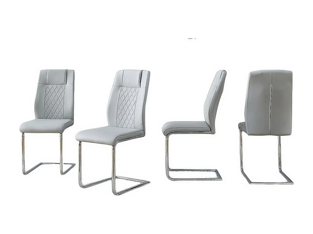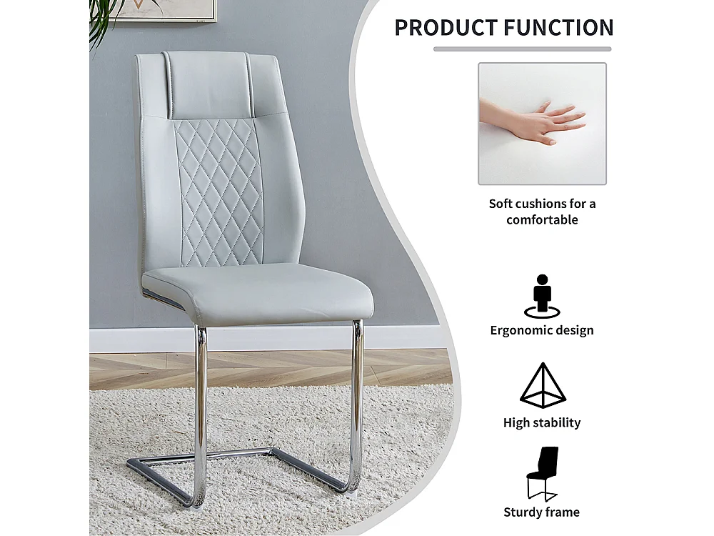 Chaise salle à manger PU gris clair style nordique lot de 4 dossier maille pieds métal argenté antidérapants