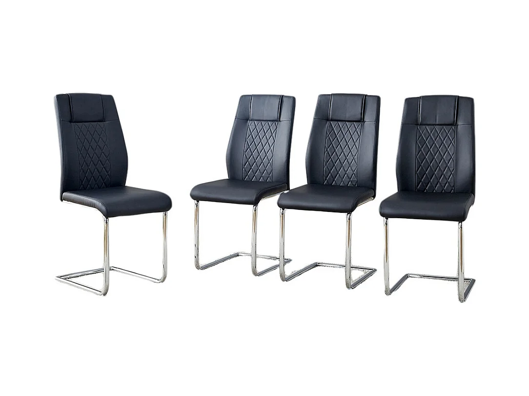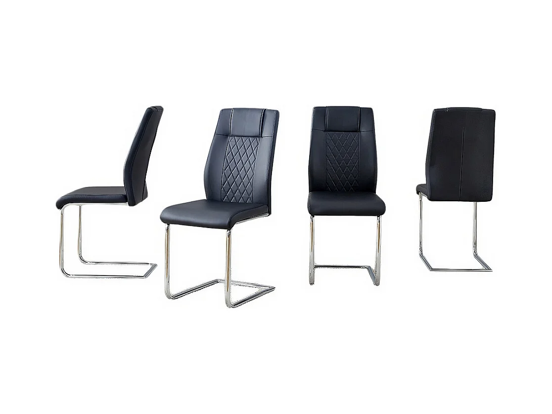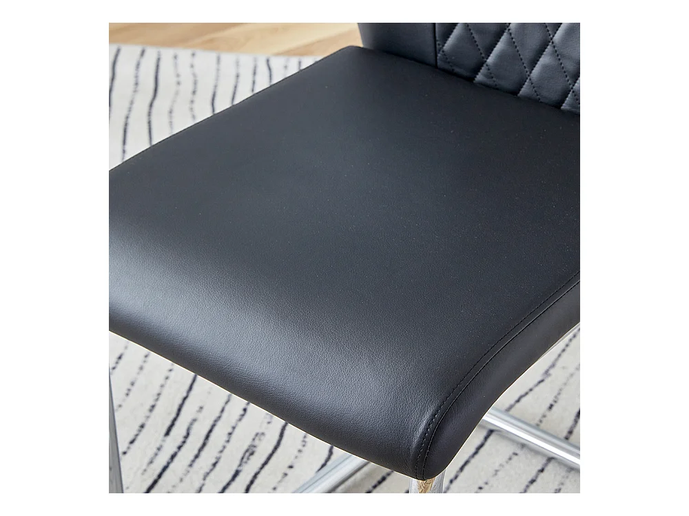 Lot de 4 chaises PU noir confortables pieds métal argenté élégance design moderne