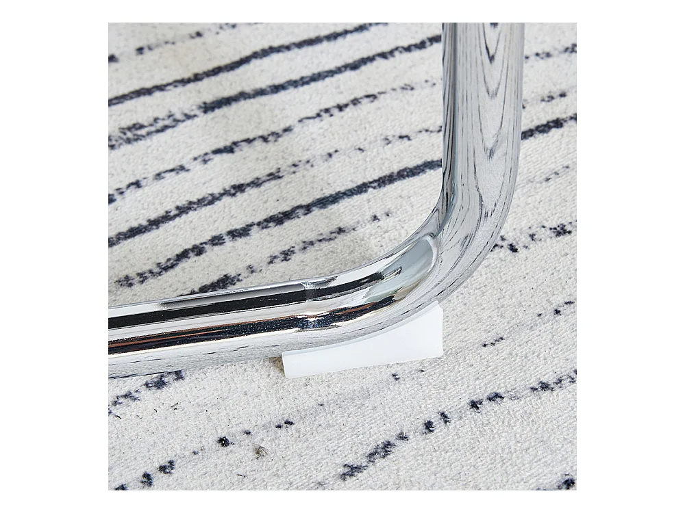 Chaise salle à manger PU noir style nordique lot de 4 dossier maille pieds métal argenté brillant antidérapants