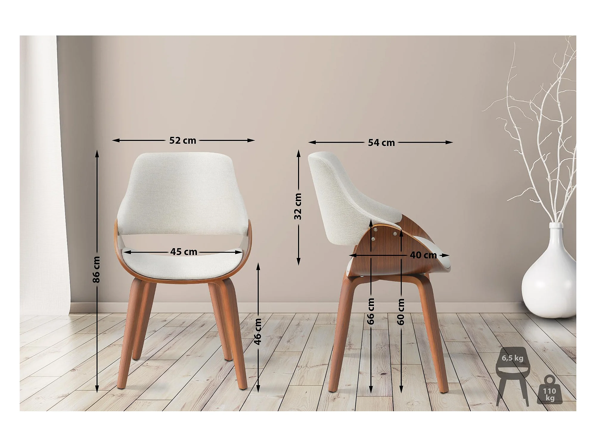 chaise salle à manger - Tissu - Noyer / Crème - Vangale