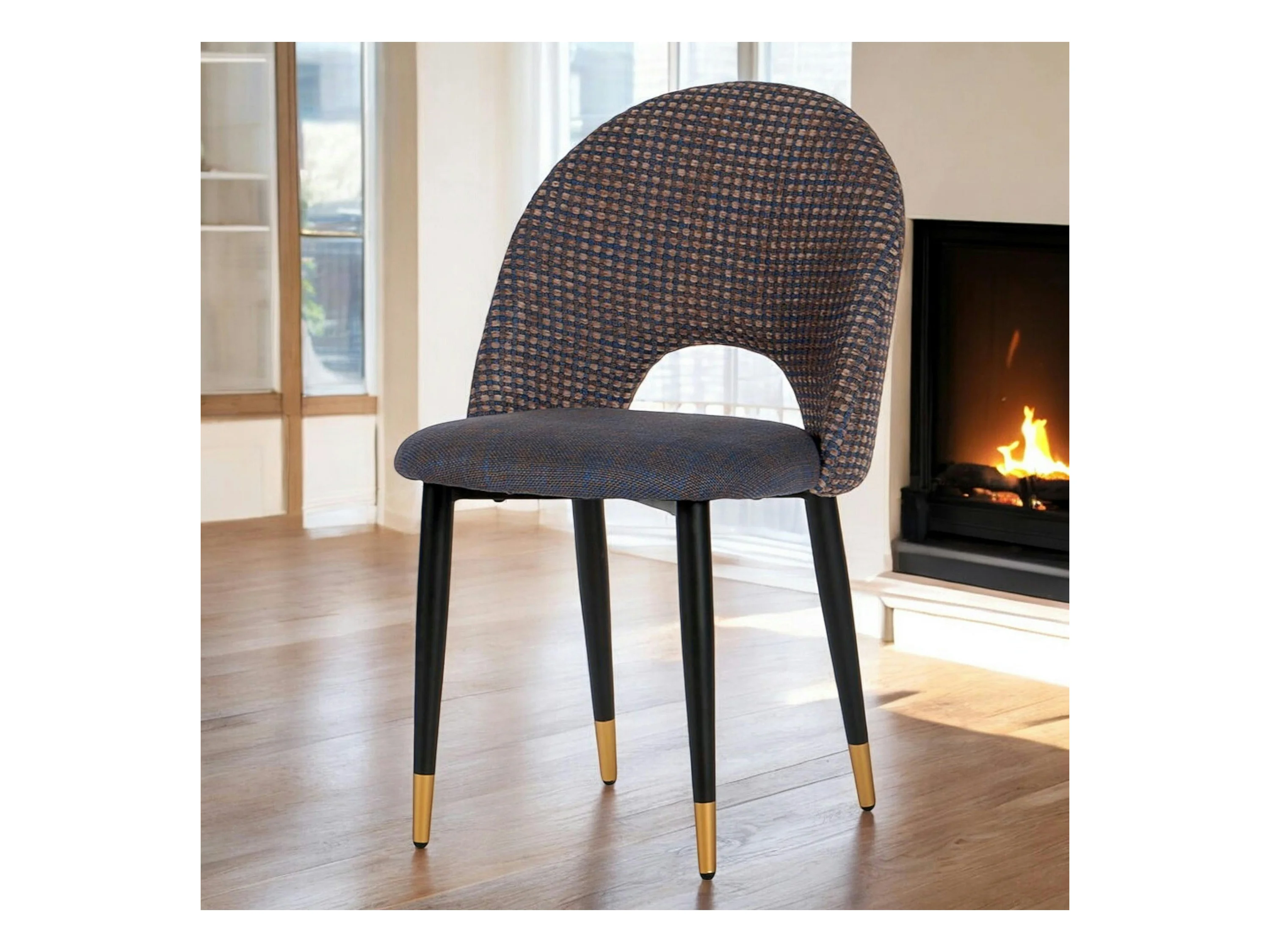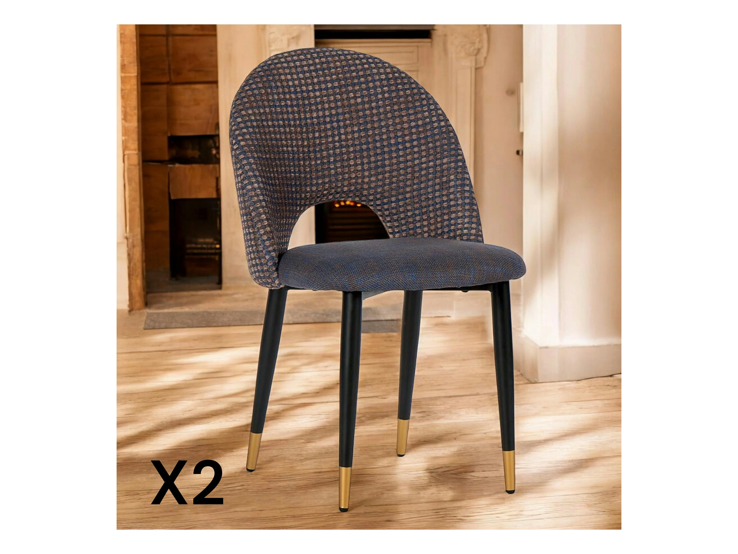 Chaise salle à manger tissu quadrillé bleu foncé (lot de 2) MALMOE